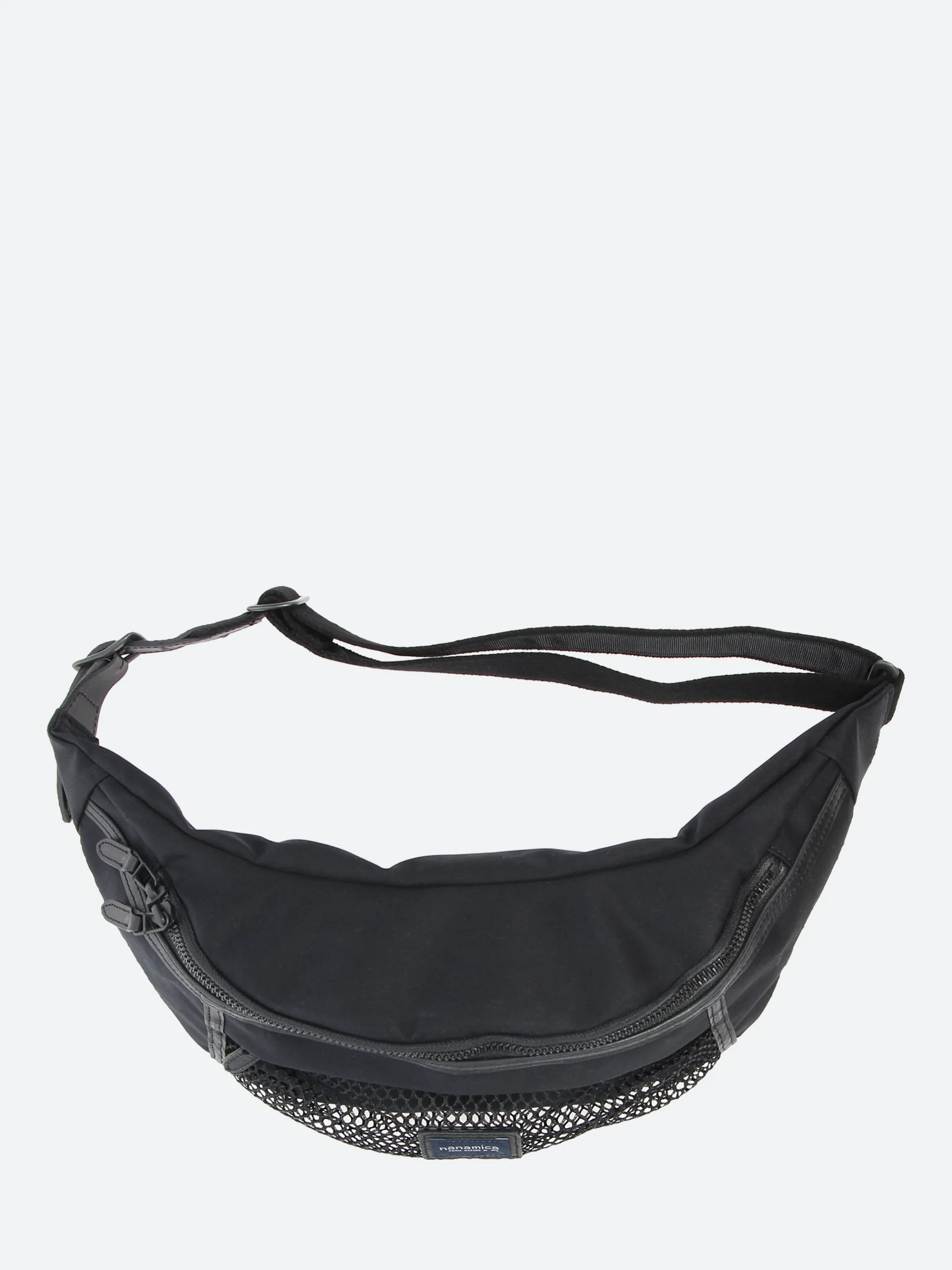 A belt bag that incorporates the design of a hunting game bag. Made of a durable water-repellent cotton twill material, bonded with a waterproof breathable film and nylon, creating an original three-layer fabric.