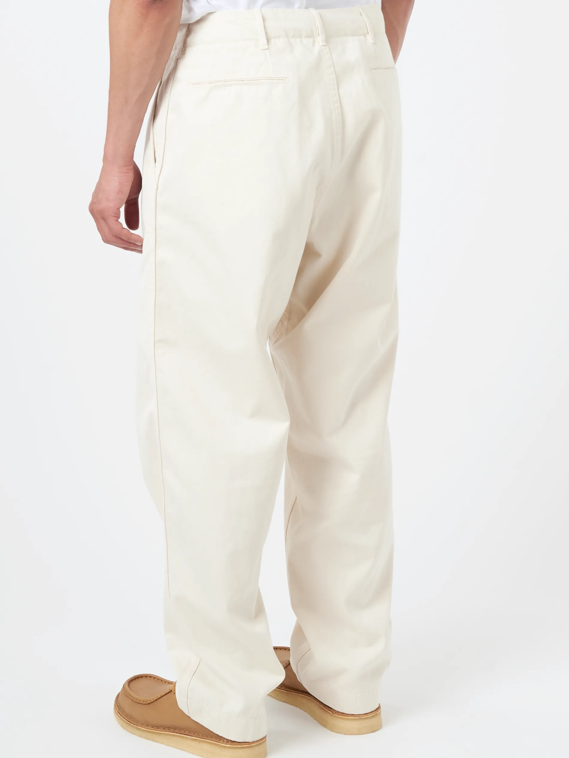 Nanamica chino pants with a wide tapered silhouette. Design based on US Army chino trousers from the 1940s. Made from the brand’s original hybrid material with the texture of cotton and the added functionality of being lightweight, durable, and fast drying.