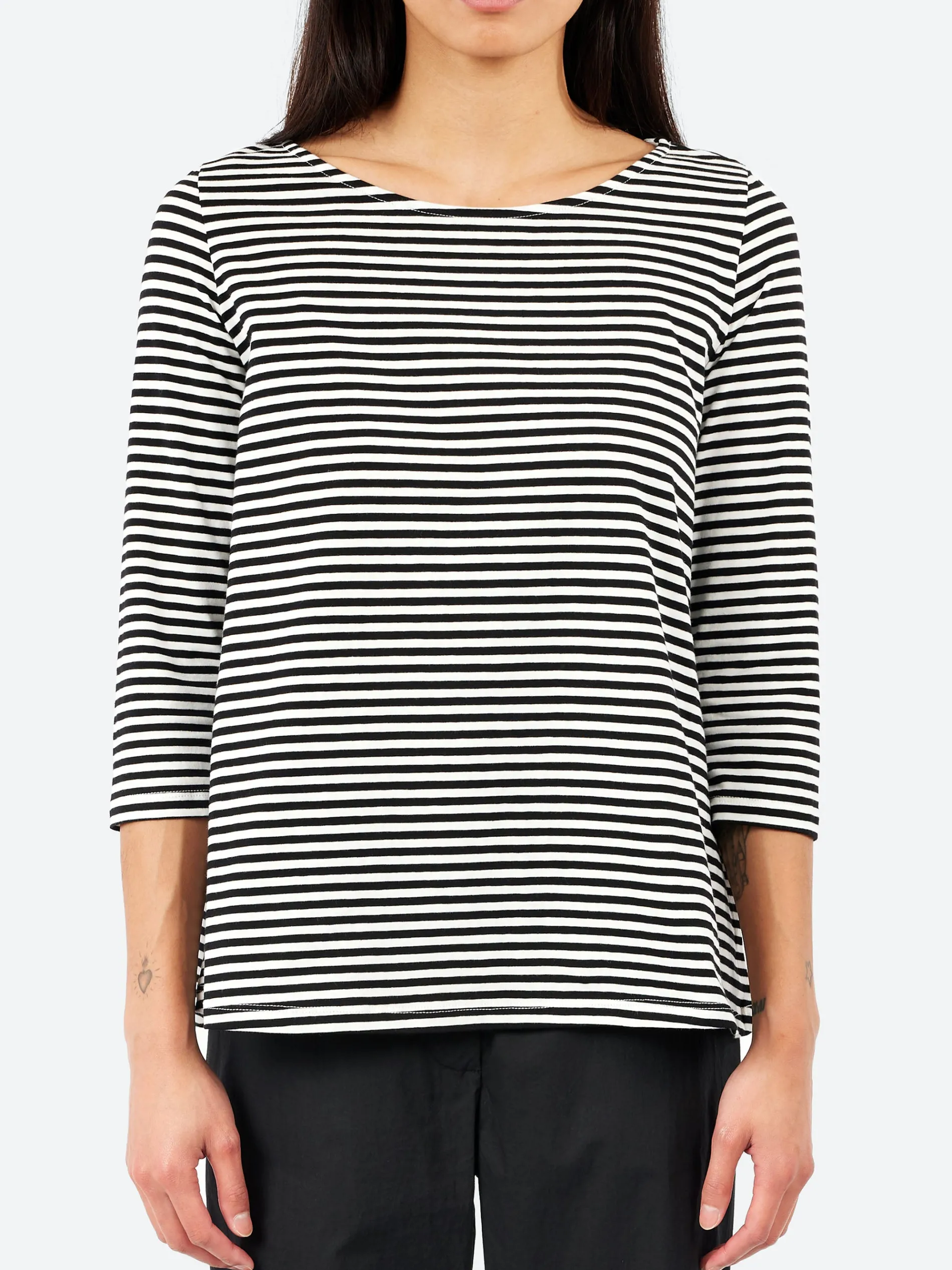 Basic striped crew-neck t-shirt with dropped shoulders and A-shape. Shallow neckline and comfortable fit.