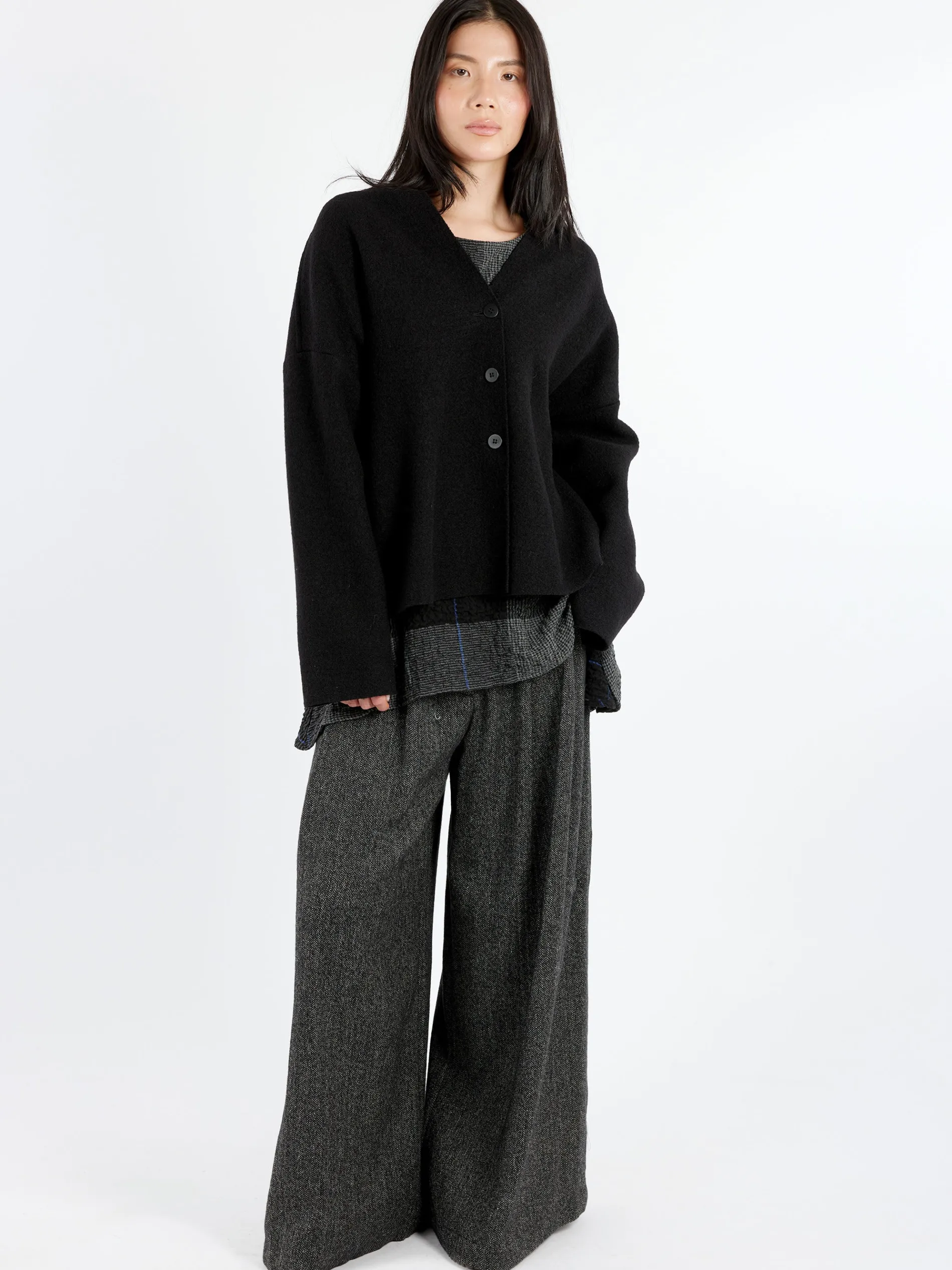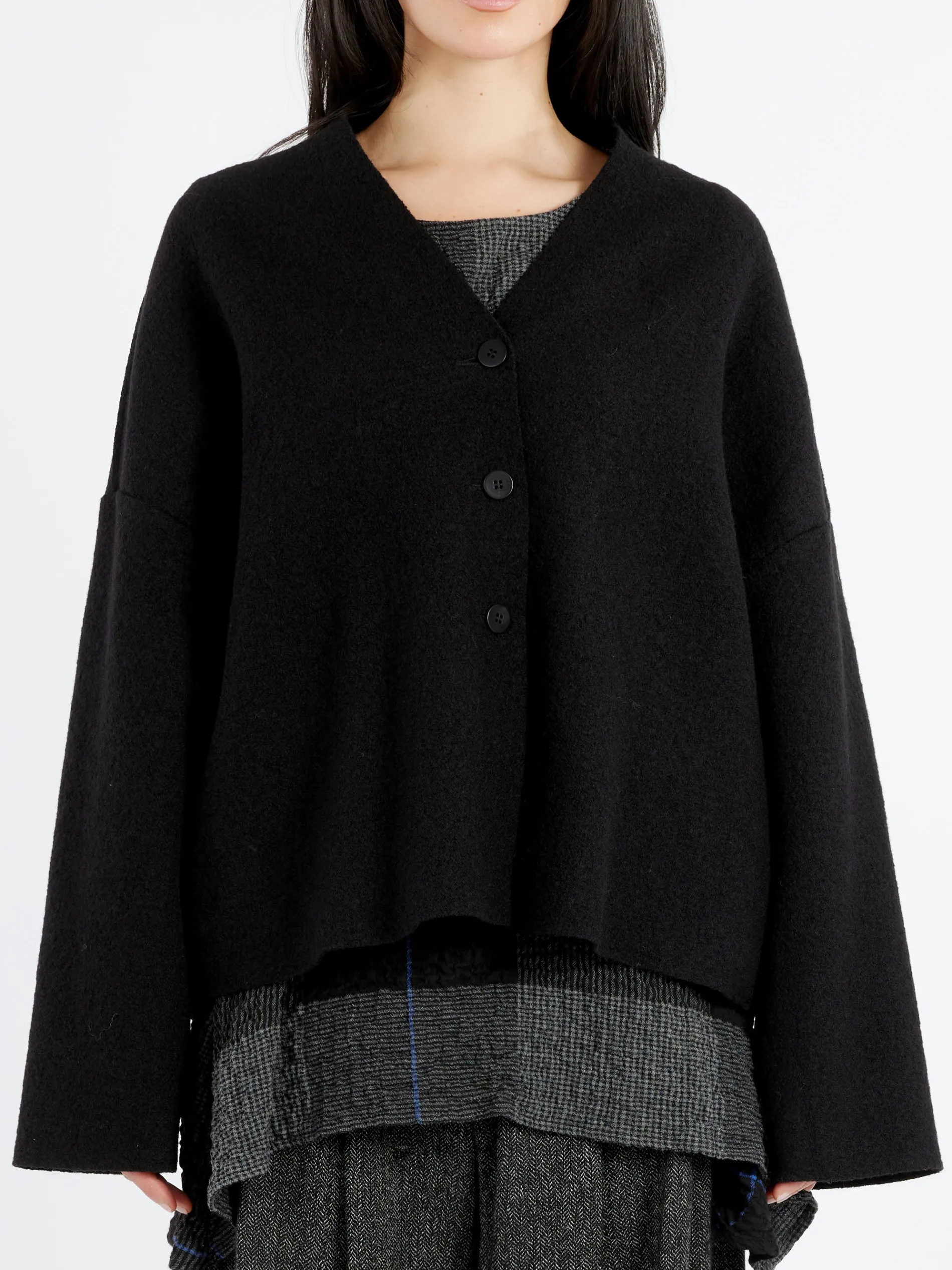 Neirami short jacket with a standing neckline. The fit is relaxed and intentionally done so the garment is more comfortable and dynamic.