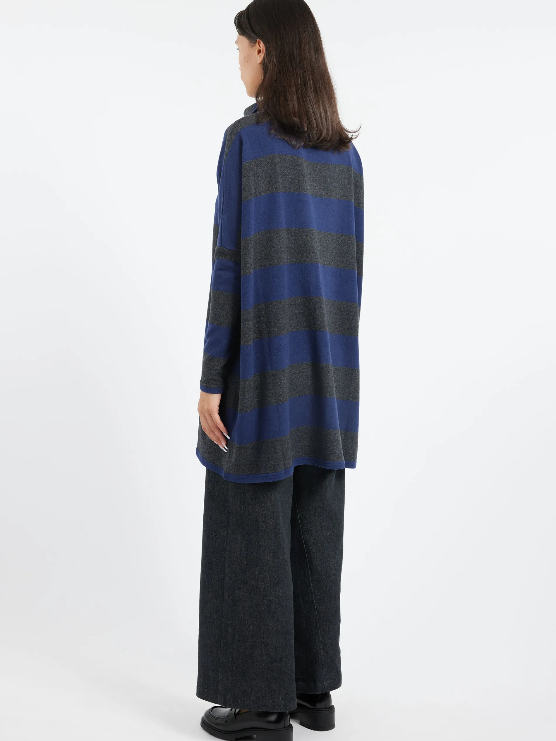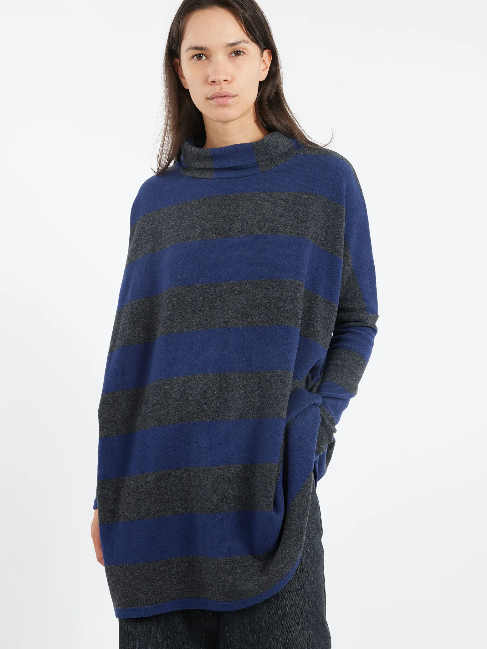 Neirami striped high neck sweater with a boxy shape and intentionally wide lines to make it comfortable and dynamic.