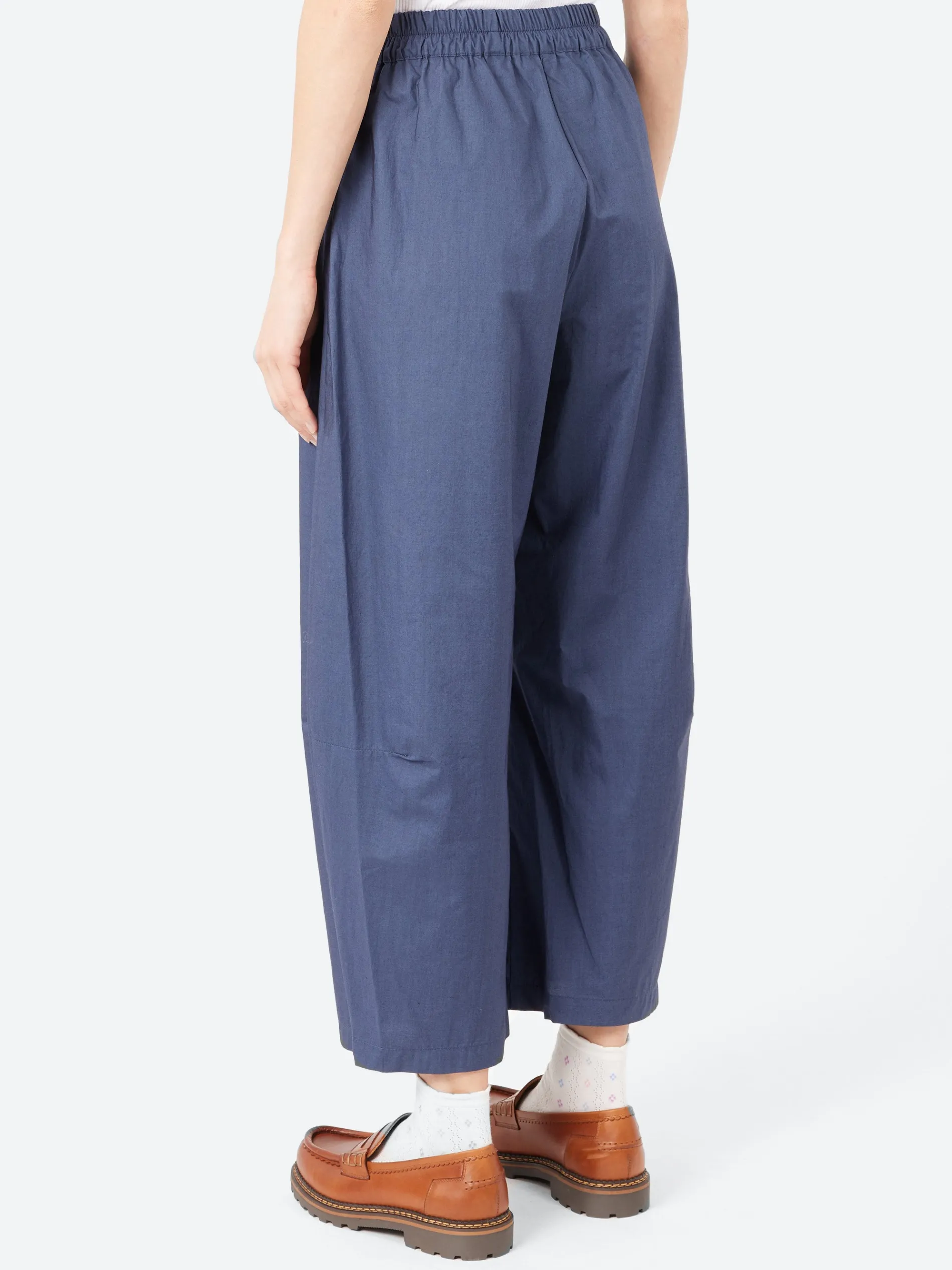 The Neirami Karate pants feature a wide-leg design with distinctive details at the hem. The relaxed fit forms the foundation of the Neirami silhouette, with wide, intentional lines that offer a comfortable and dynamic look. The trousers are designed with elastic waistbands for a soft, flexible fit around the hips, ensuring ease of movement while maintaining style and comfort.