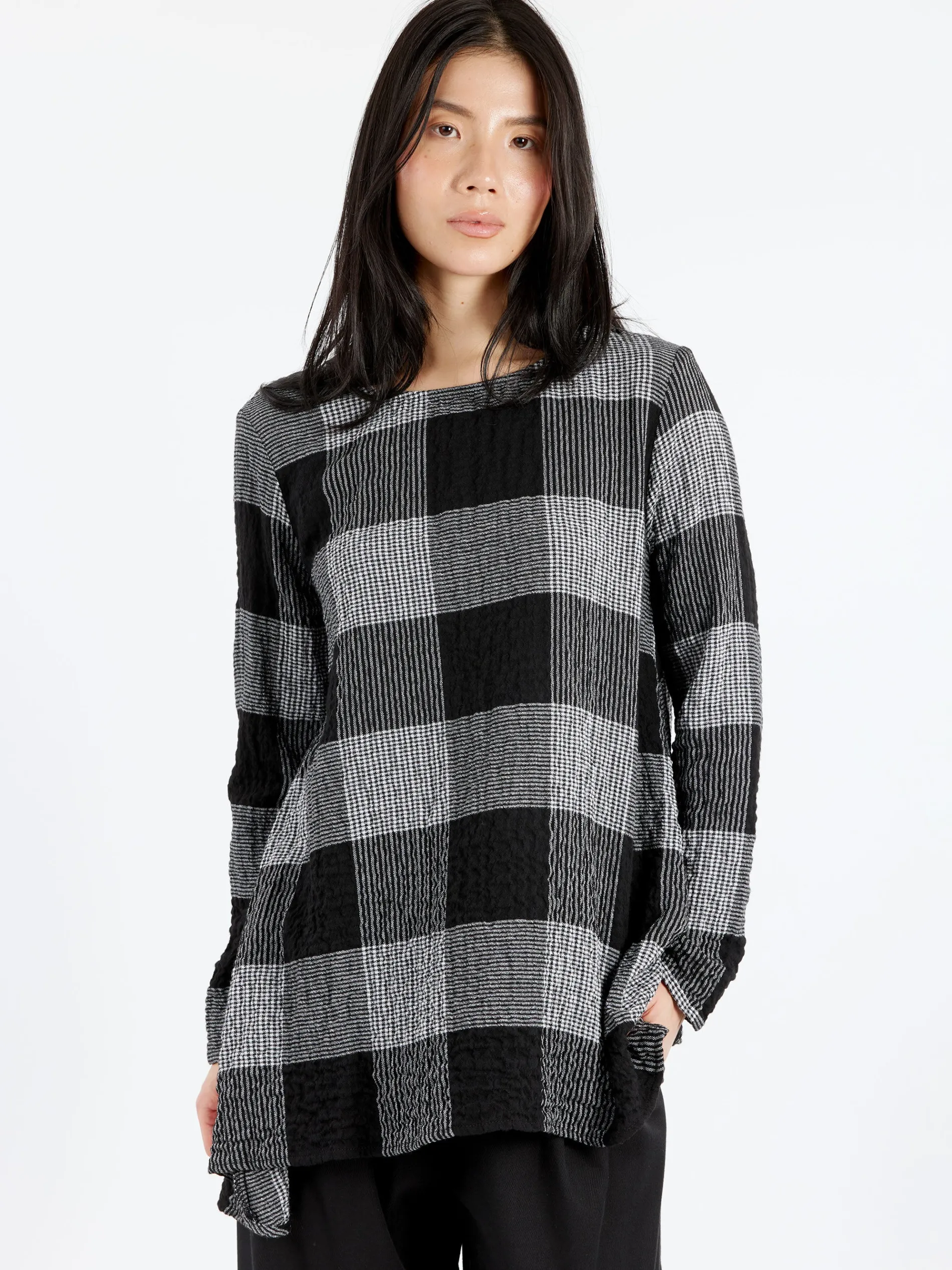 Neirami flared top in a cotton stretch fabric. Comfortable to wear with a soft drape.