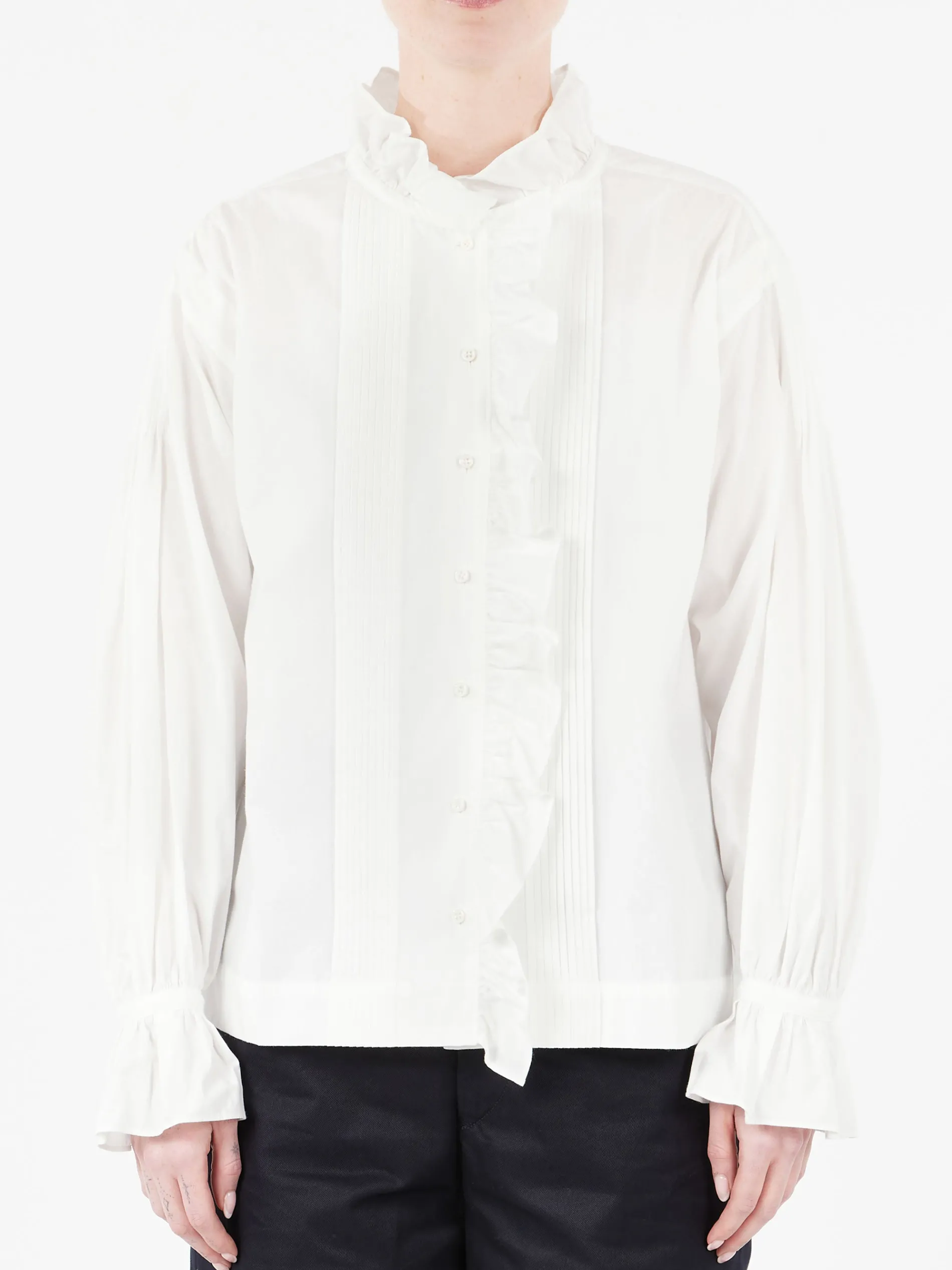 - Gathers at the collar, front, shoulders, sleeves and cuffs