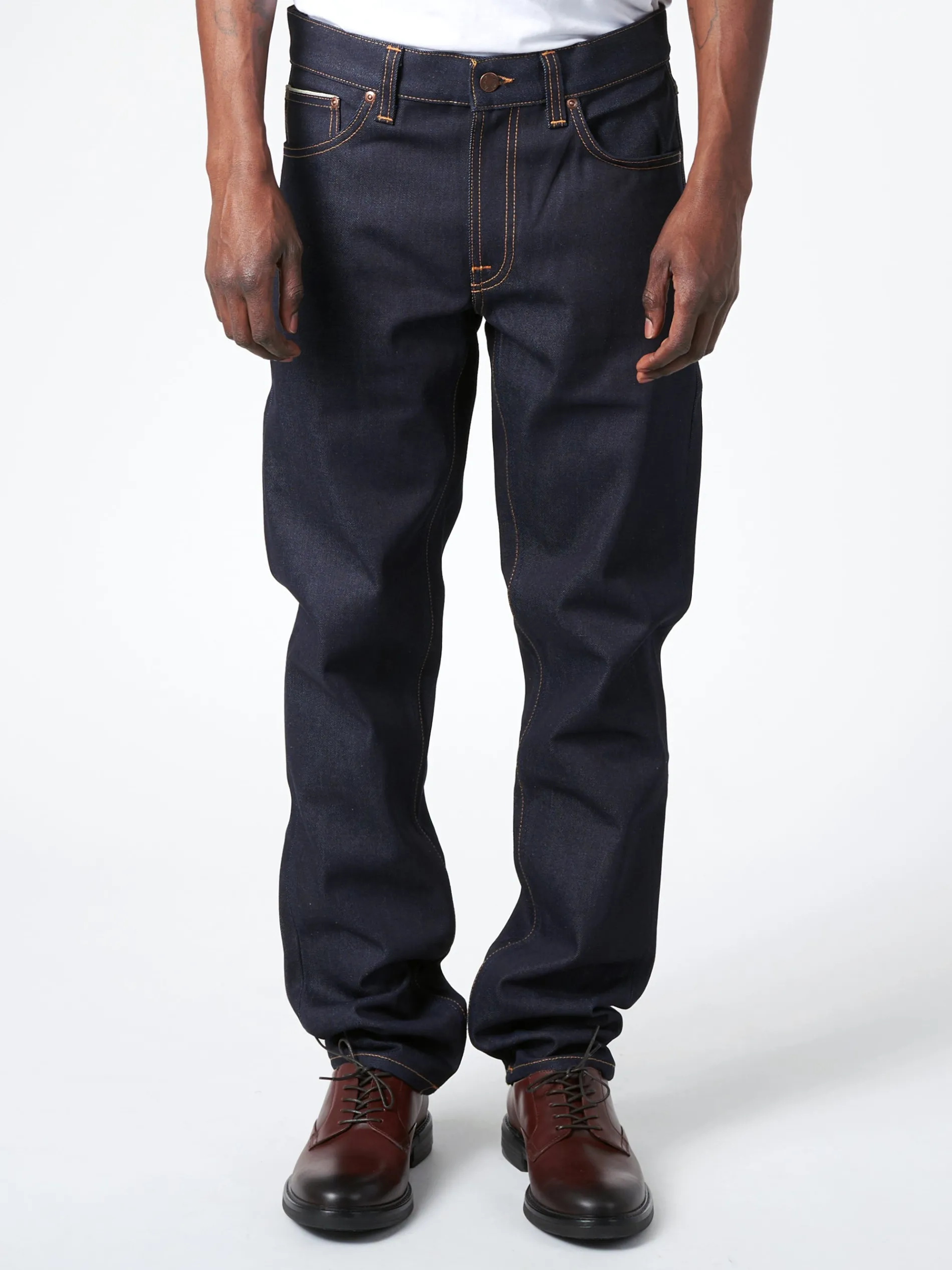 Regular fit jeans with a straight leg made in organic selvedge denim. These jeans are made from a rigid 14.25 oz Turkish selvedge denim. Gritty Jackson has well-balanced legroom that gives the fit a neat silhouette while also offering great comfort.