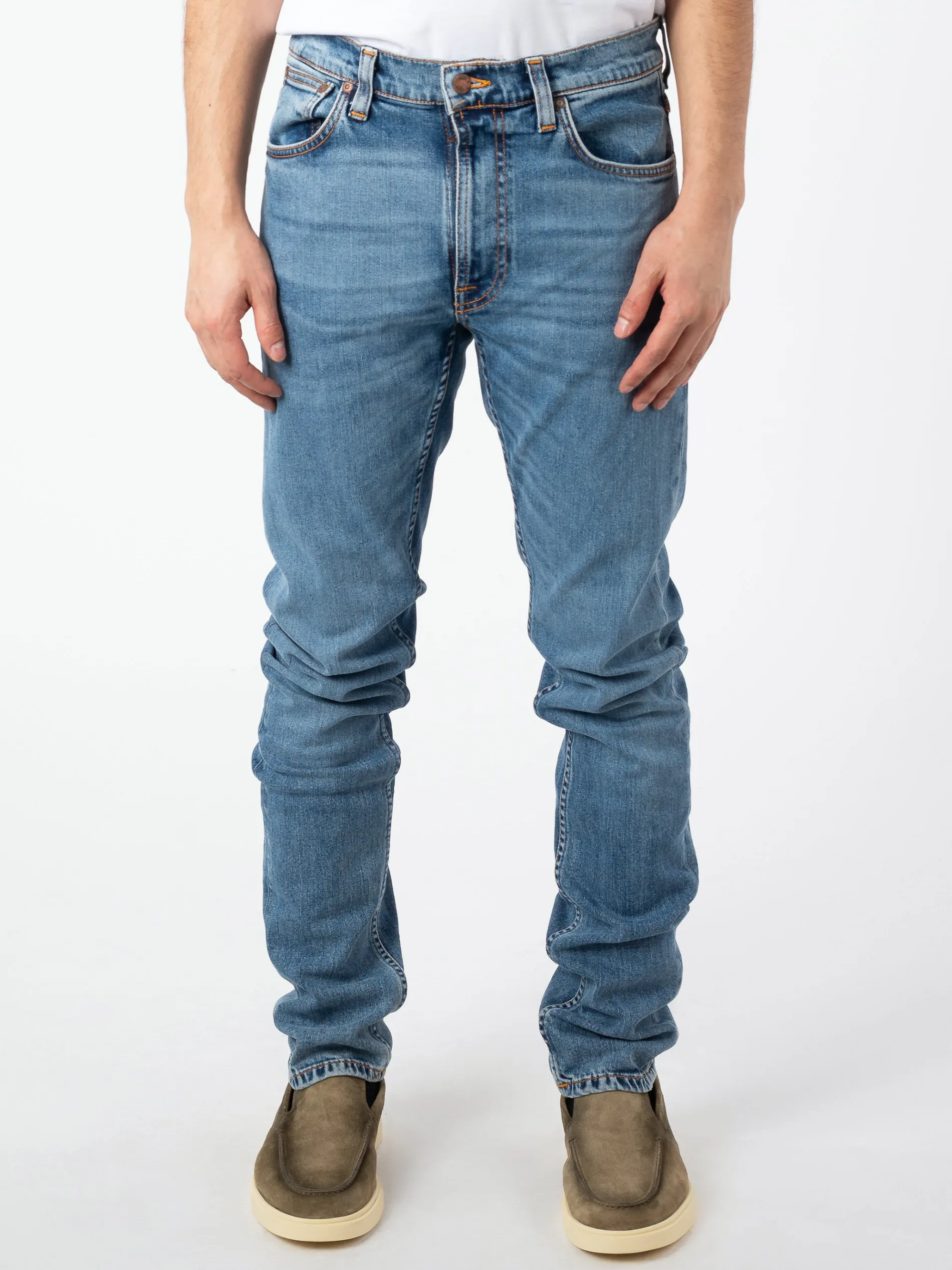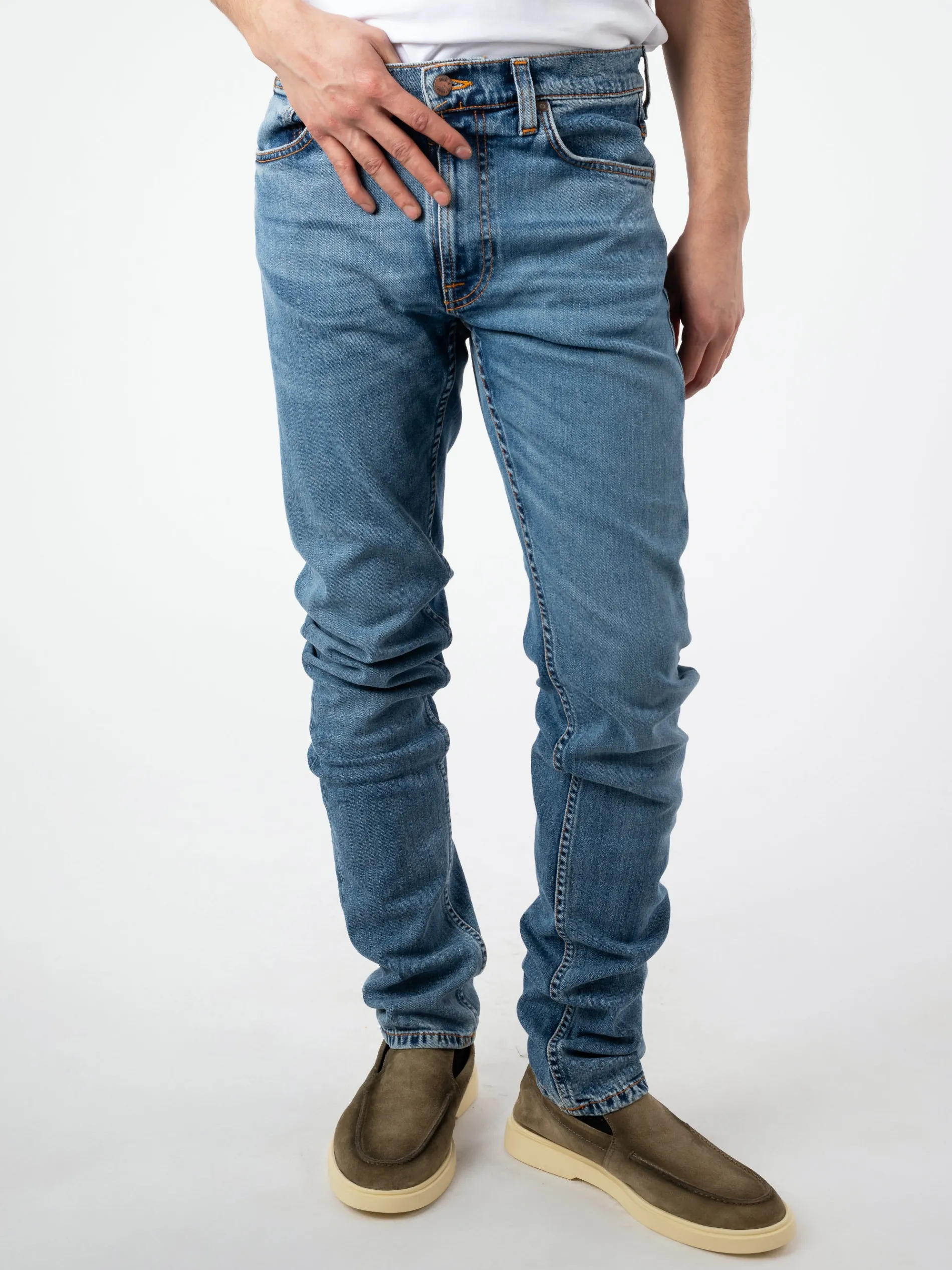 Jeans with a slim tapered fit made in organic comfort stretch denim. It tapers evenly from the hip down to the ankle, an aspect that has made Lean Dean one of Nudie Jeans’ most popular fits.