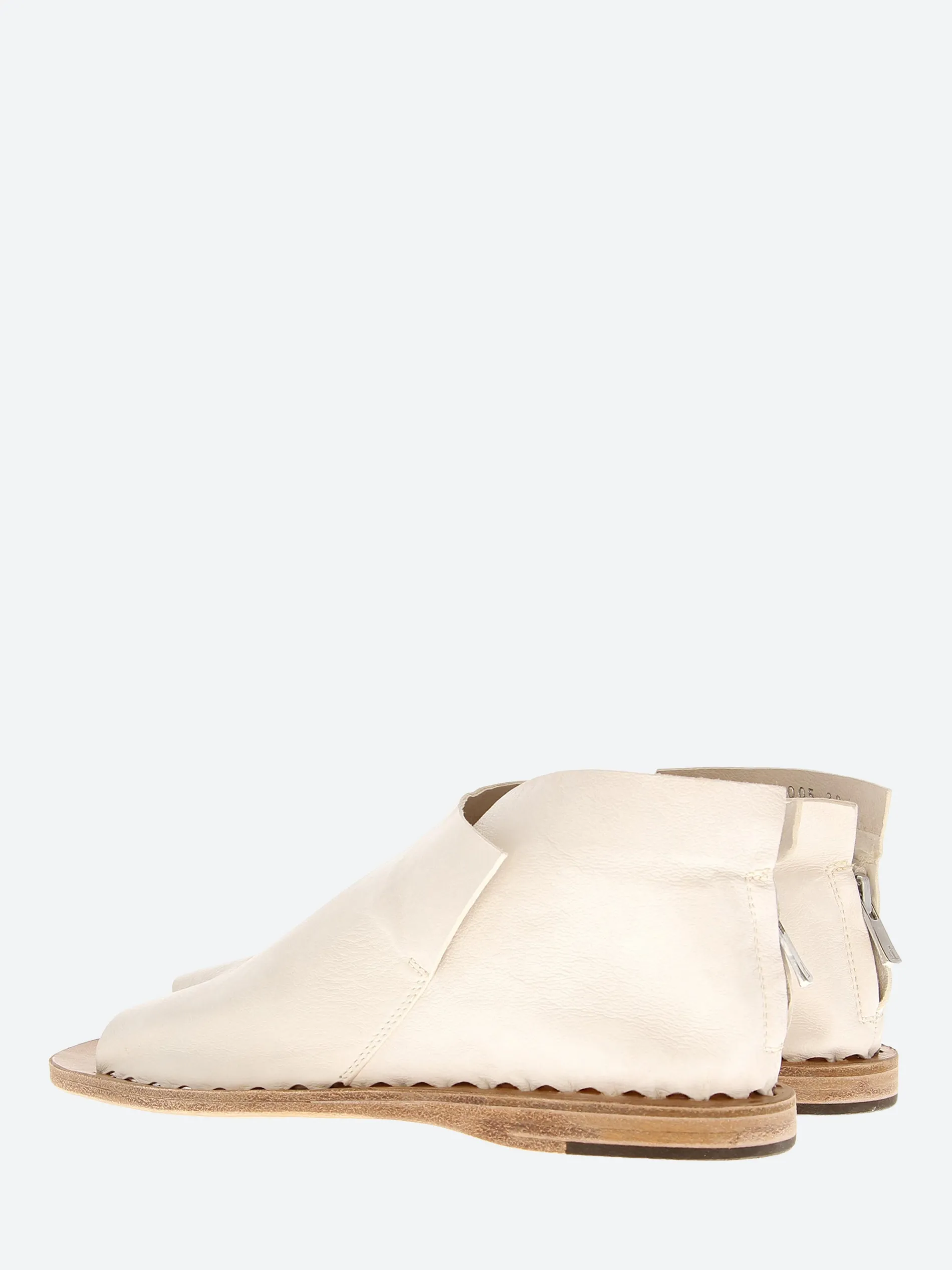 The clean design of the Itaca sandals highlights the impeccable quality of the materials. Handcrafted from soft leather, they feature an asymmetrical wrapped upper with a back zip closure and flat leather sole.