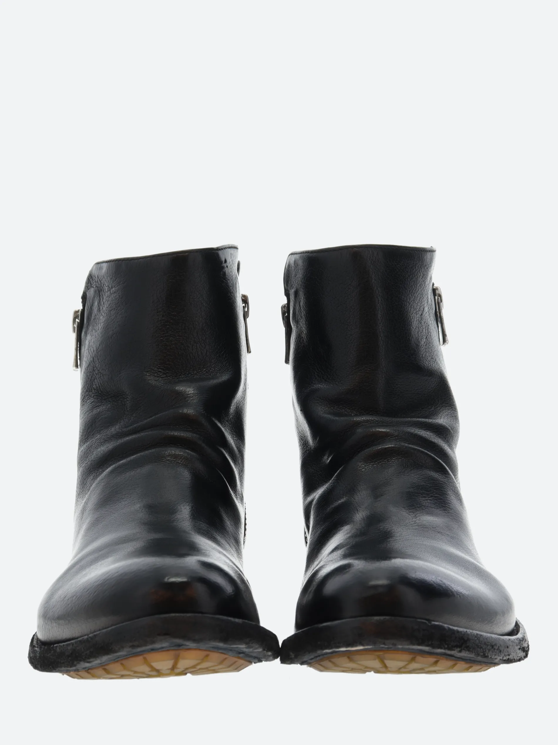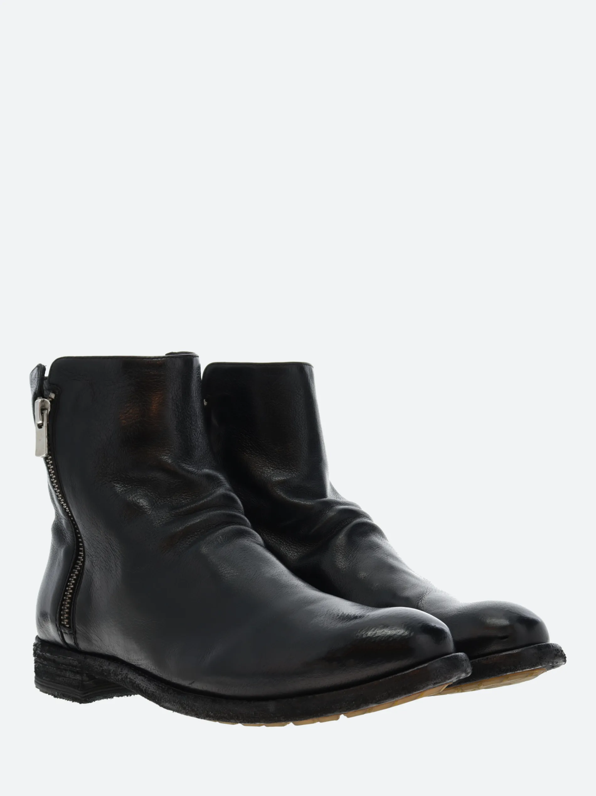 Officine Creative Lexikon ankle boots handcrafted from soft leather with a low stacked heel and tread rubber inserts.