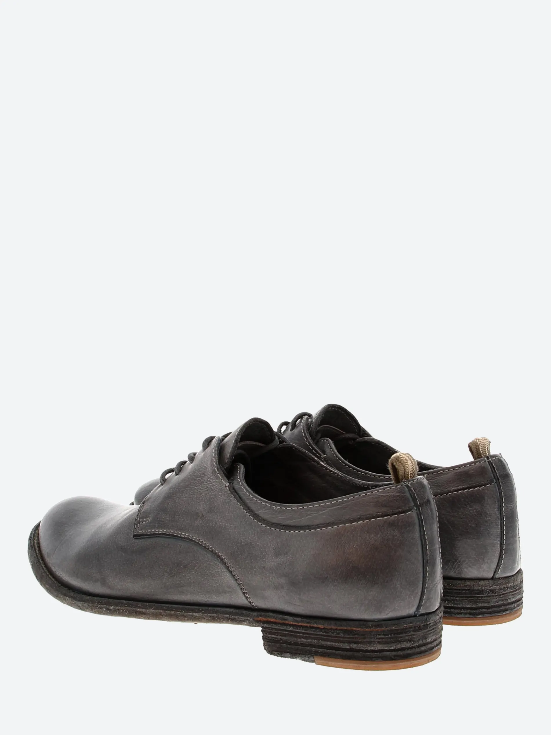 Officine Creative laceless derby in brushed blue leather. Piece-dyed and finished with a stitched custom leather sole.