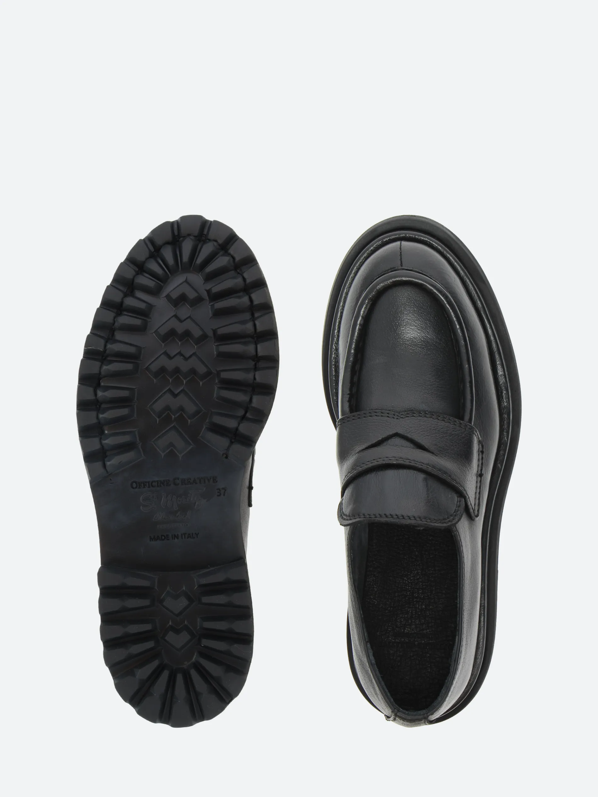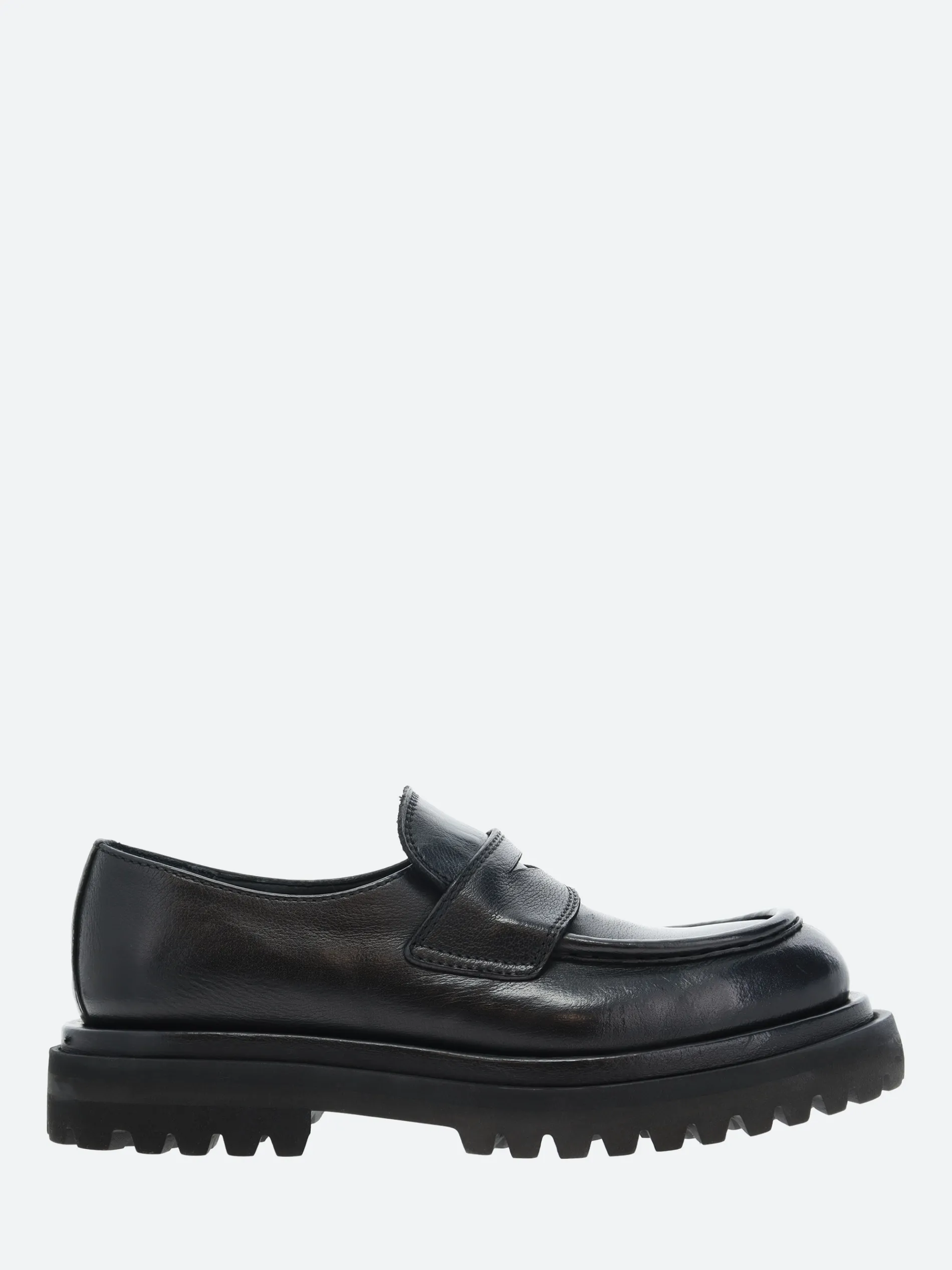Set on a rubber tread sole, Officine Creative’s Wisal loafters reveal a contemporary and bold design. They are handmade by artisans from fine black smooth leather.