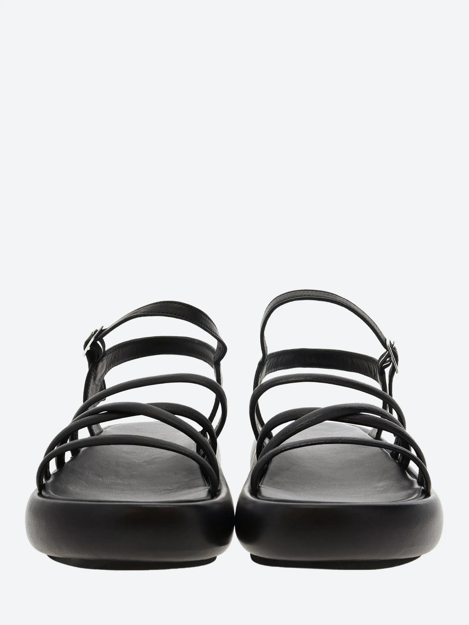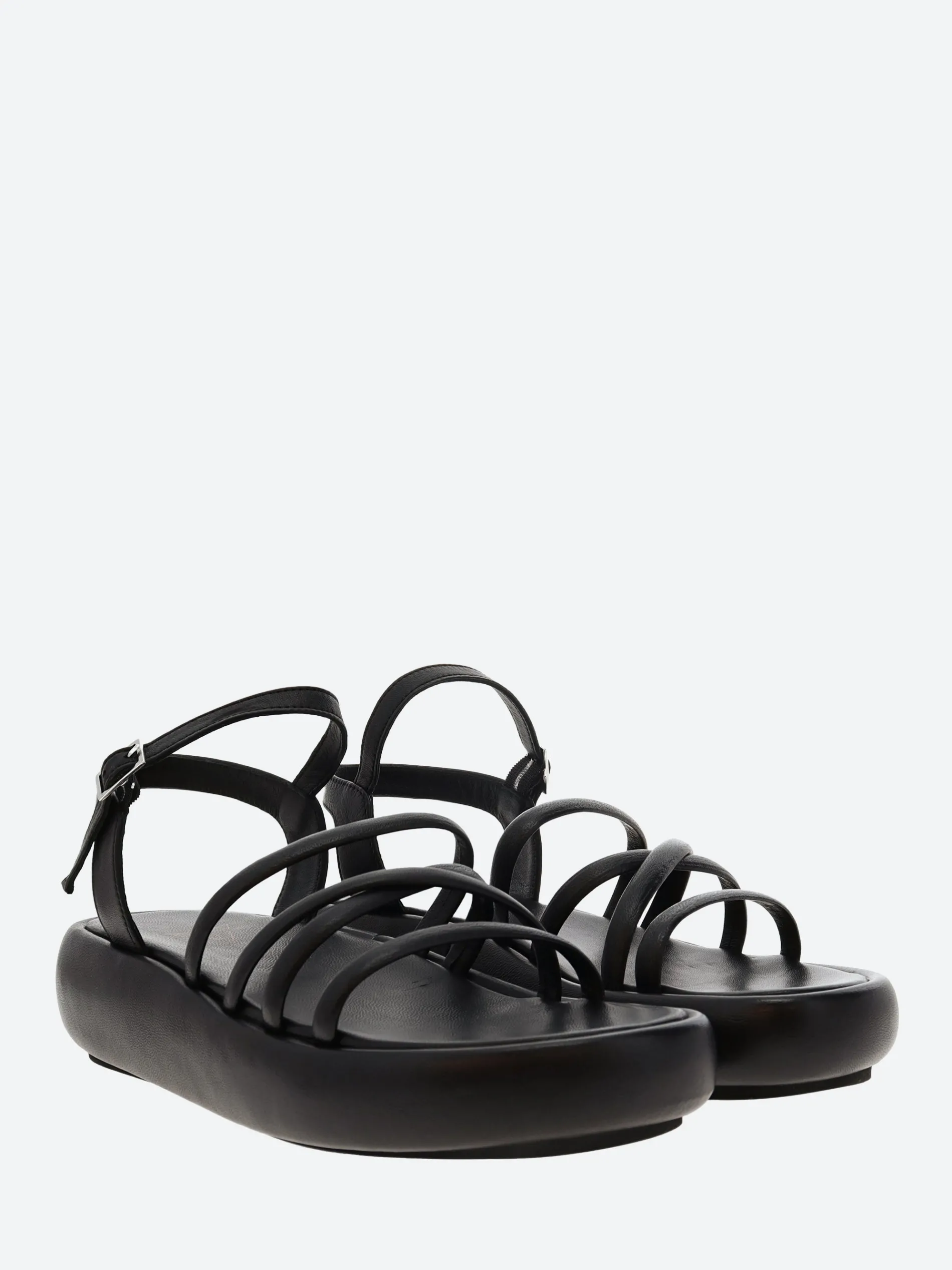 Open Closed Barbara sandals with thin straps at the vamp and a y-strap with buckle closure ensures a secure fit, while the leather wrapped platform adds a statement-making touch.