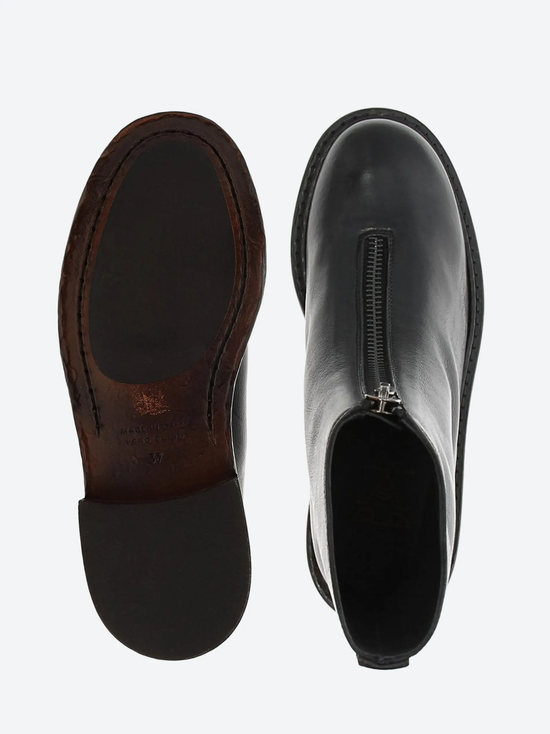 Outsole: leather and rubber inserts