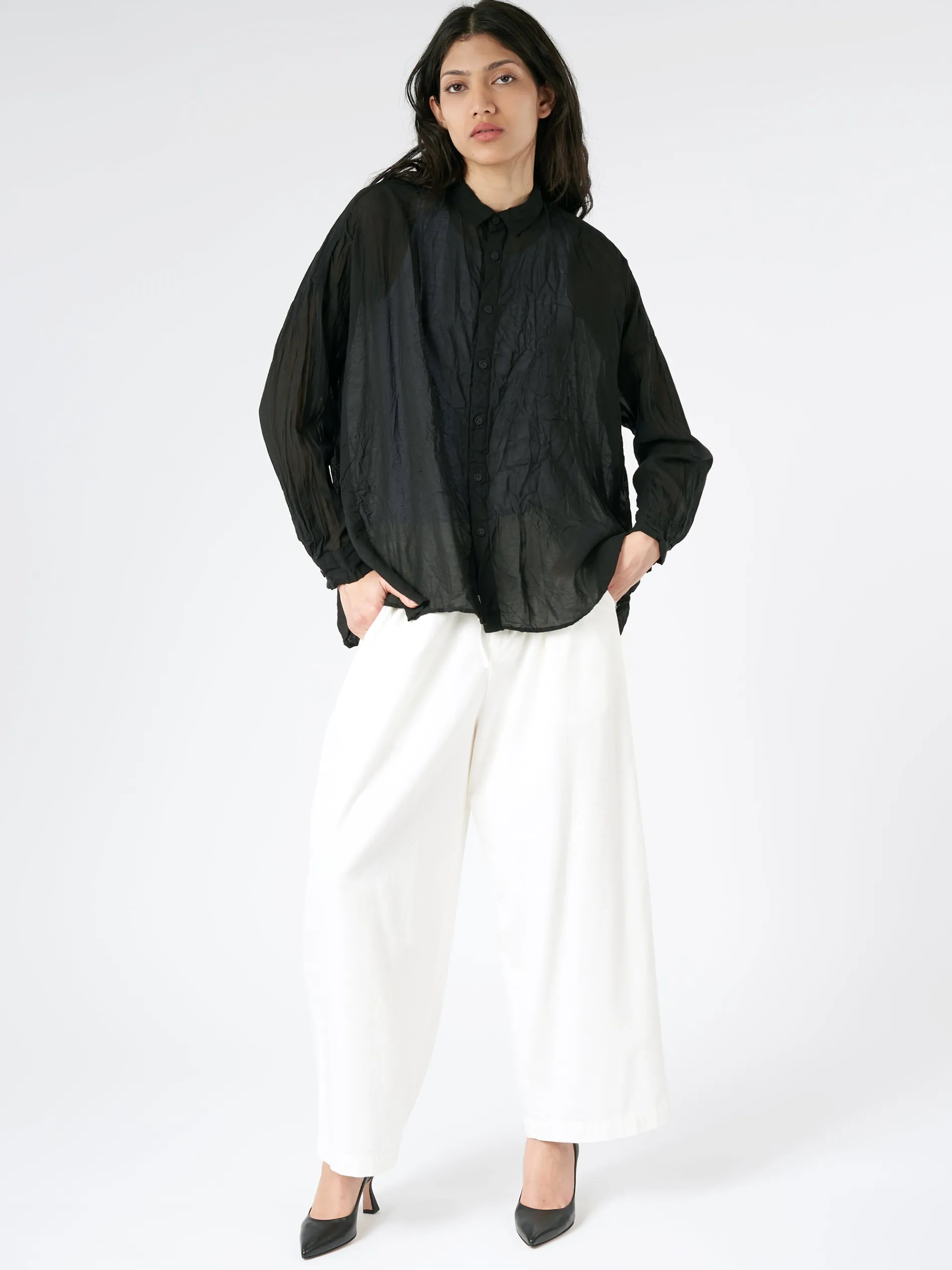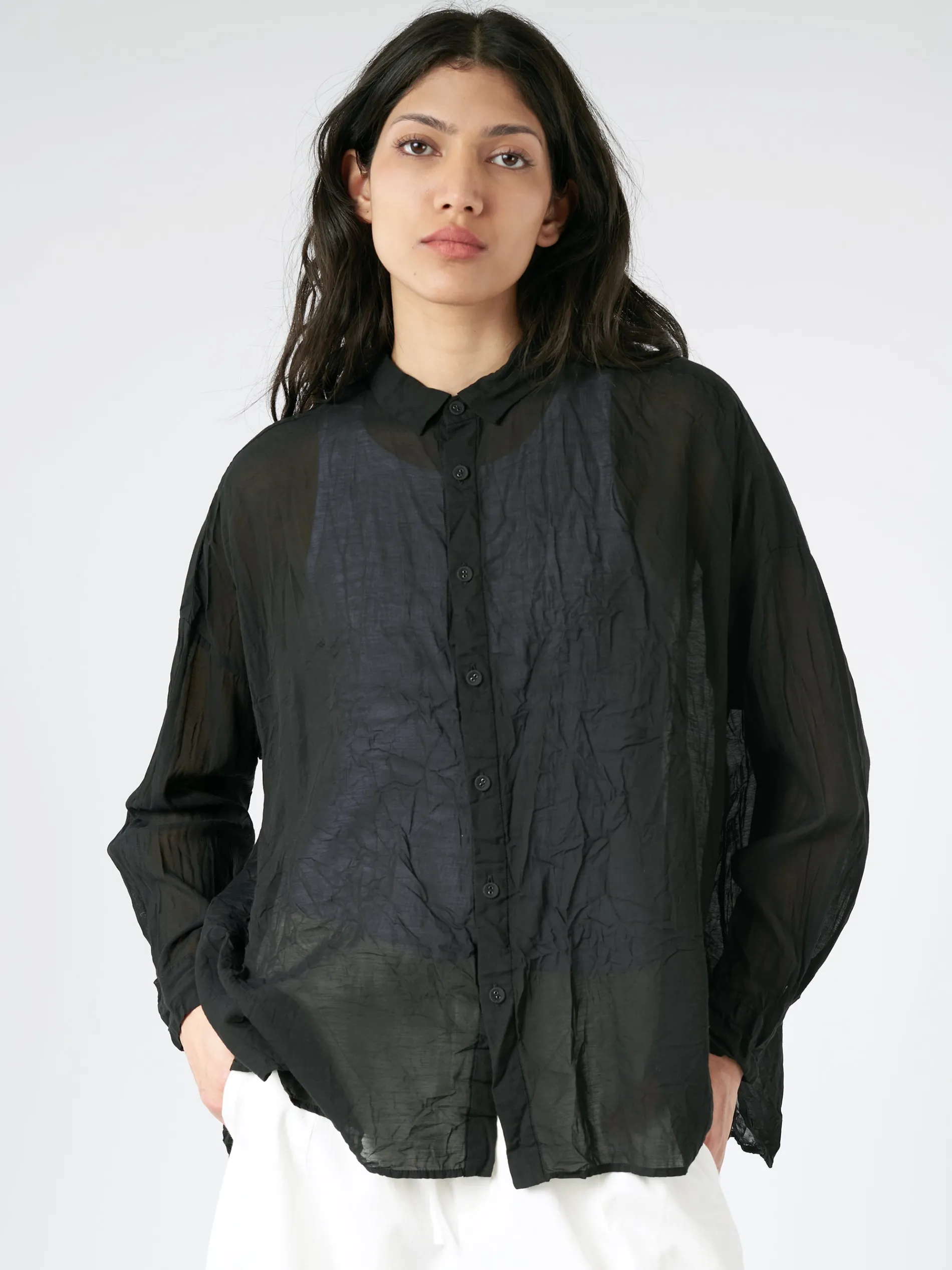 This blouse features a generous cut and utilizes a natural method for dyeing.
