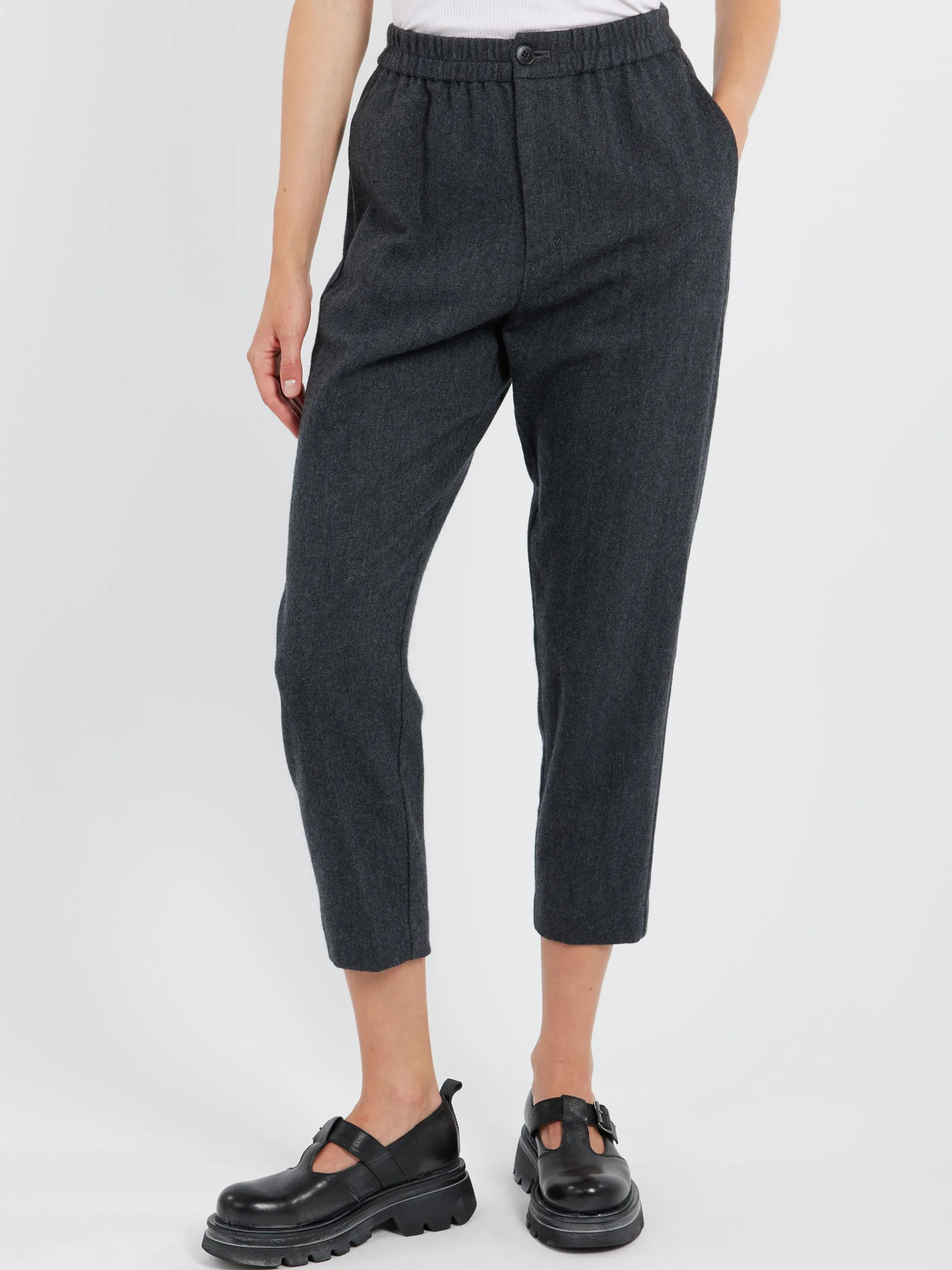 Pas de Calais tapered pants made from sustainable polyester (made from recycled plastic bottles) and ECO wool.