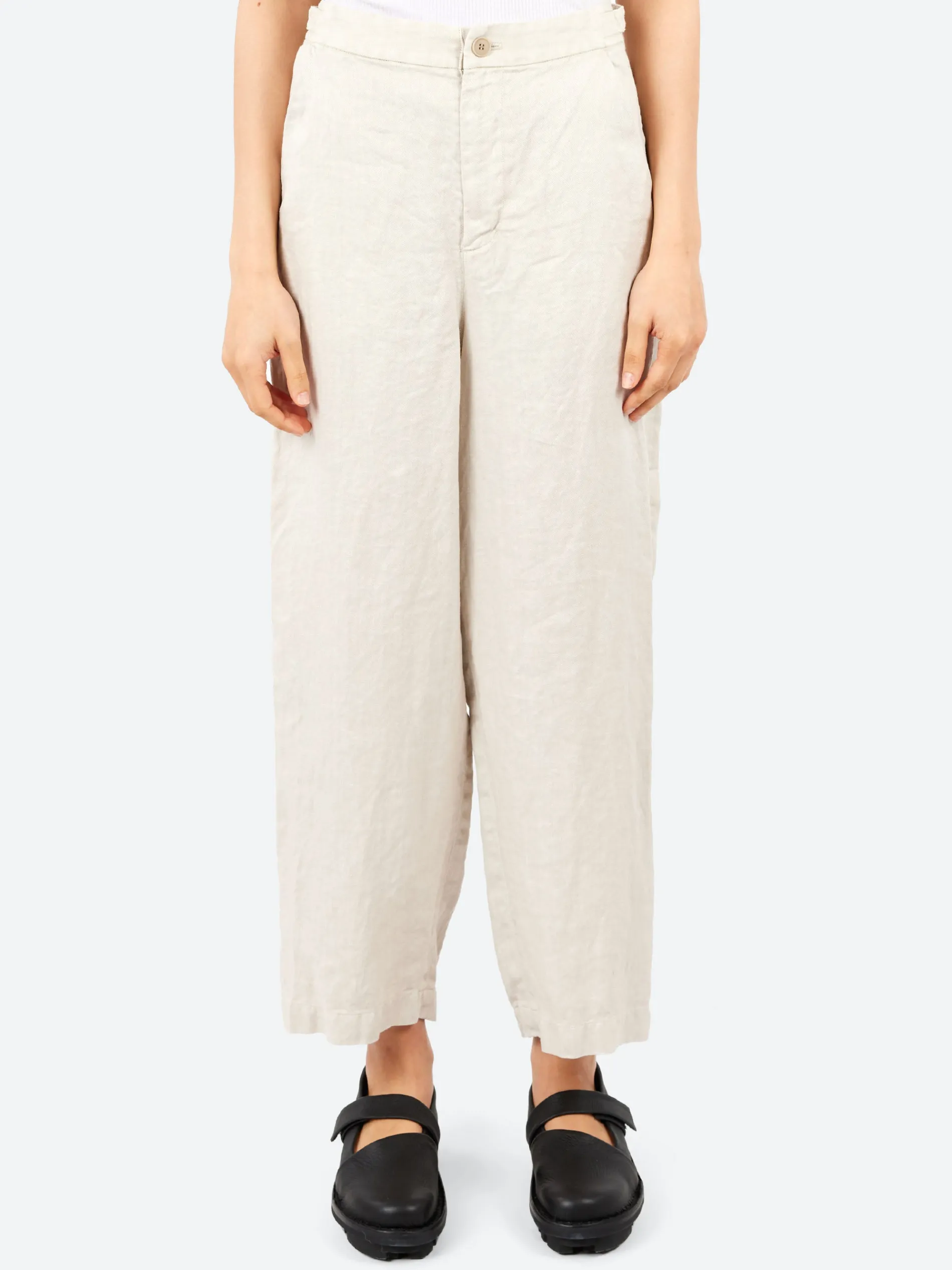 The Linen Twill Wide Pants provide a comfortable, secure fit with an elasticated back waistband. The side button detailing adds a unique touch, while the zipper and button closure make them easy to wear. Designed with practical side and back pockets, these pants offer both functionality and modern style, making them a versatile choice for everyday use.