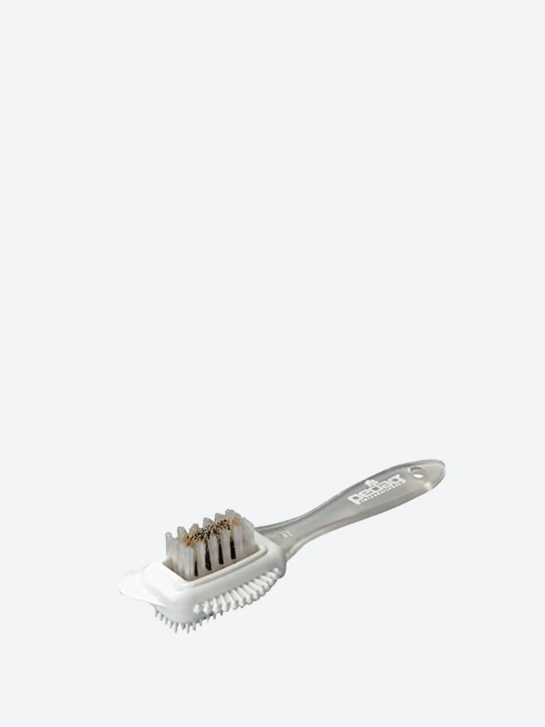 - Suede brush head with dual layer of nylon and thin metal brass bristles