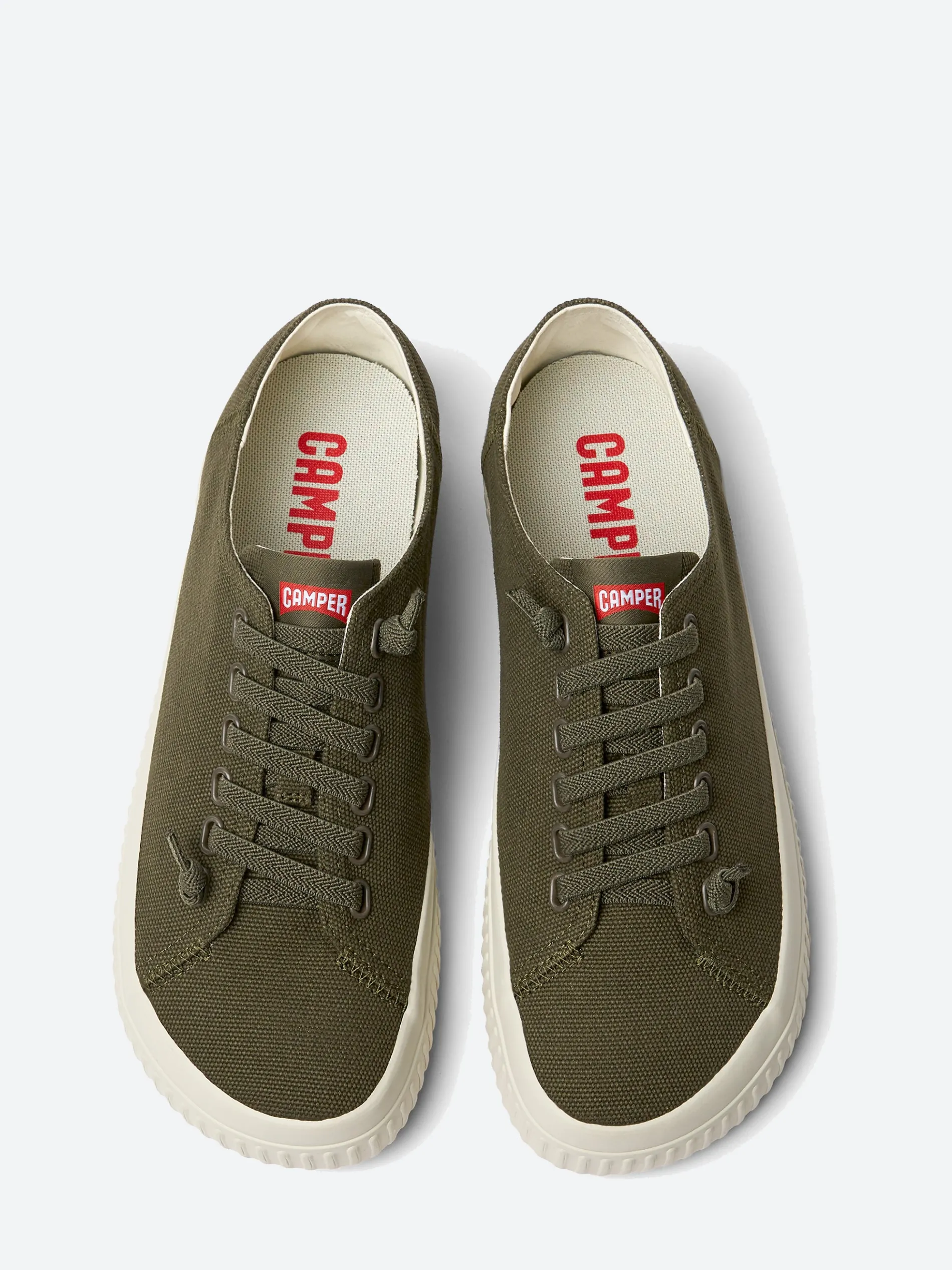Camper Peu Roda recycled cotton men’s sneakers with OrthoLite® Recycled™ footbeds and rubber outsoles.