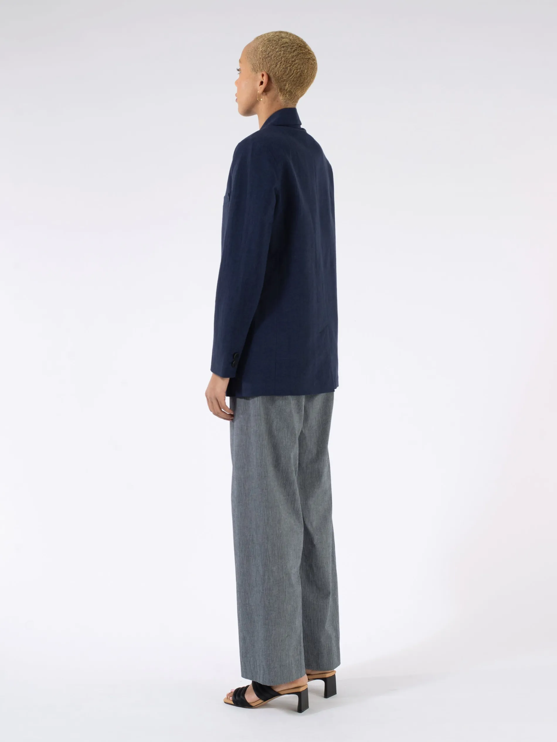 Pomandere single-breasted jacket in an unbleached cotton-linen blend. Subtle visible cotton seeds for a natural appearance.