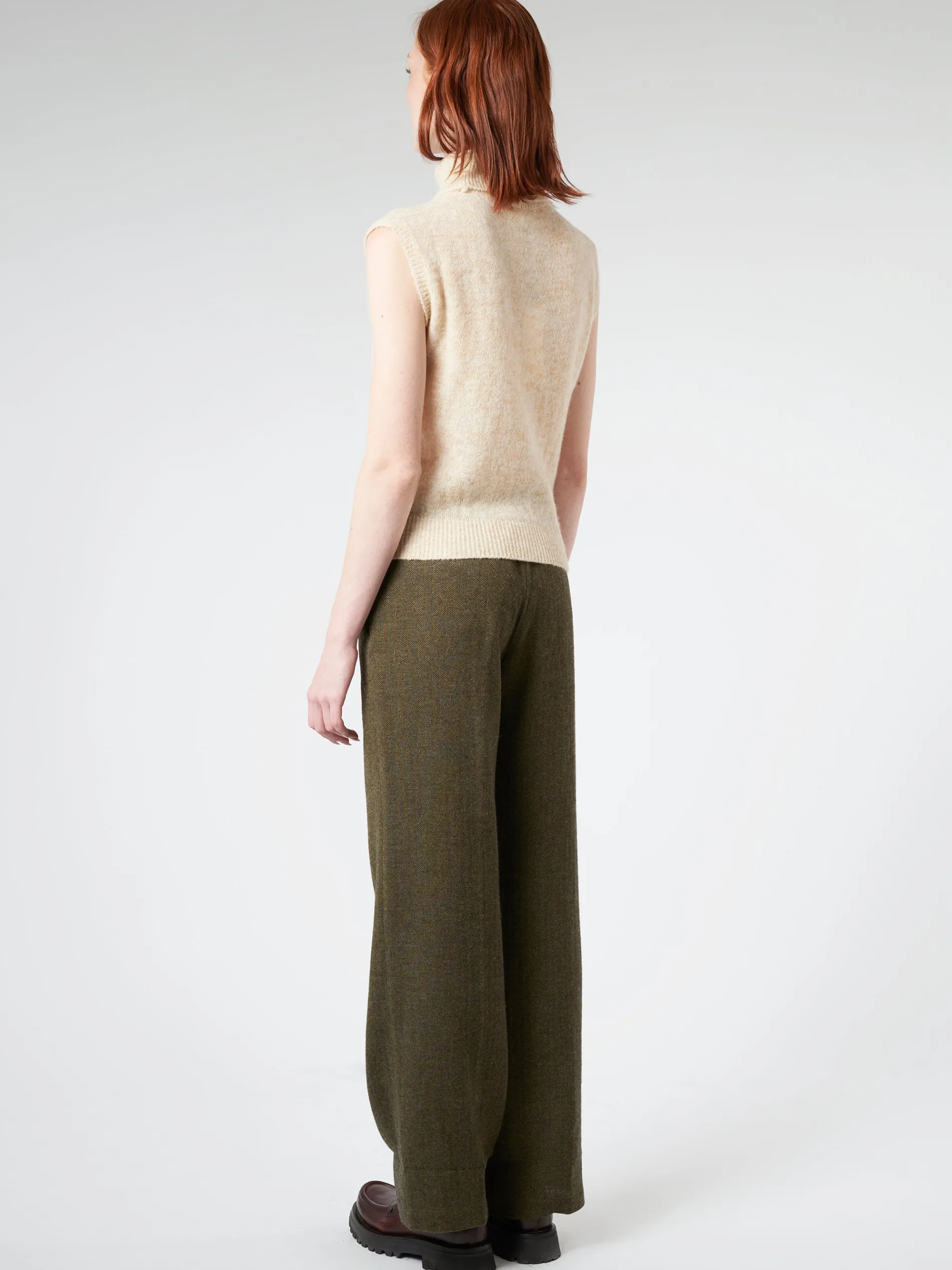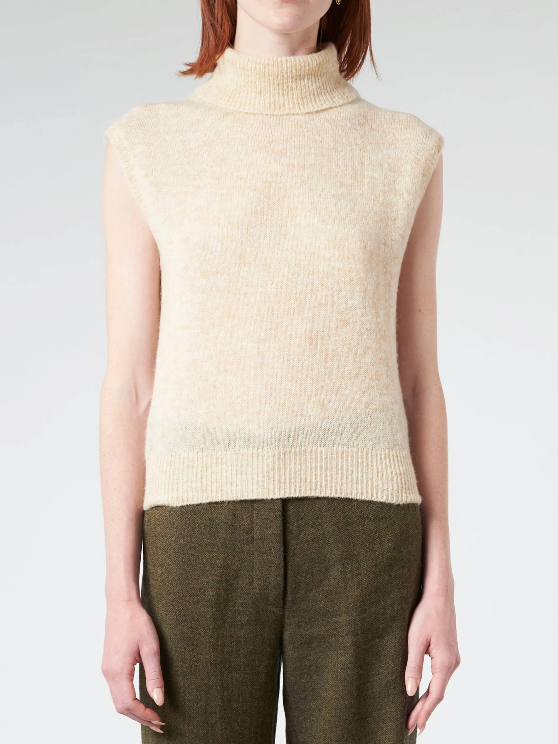 Pomandere stockinette stitch vest with high collar in alpaca and super soft merino wool.