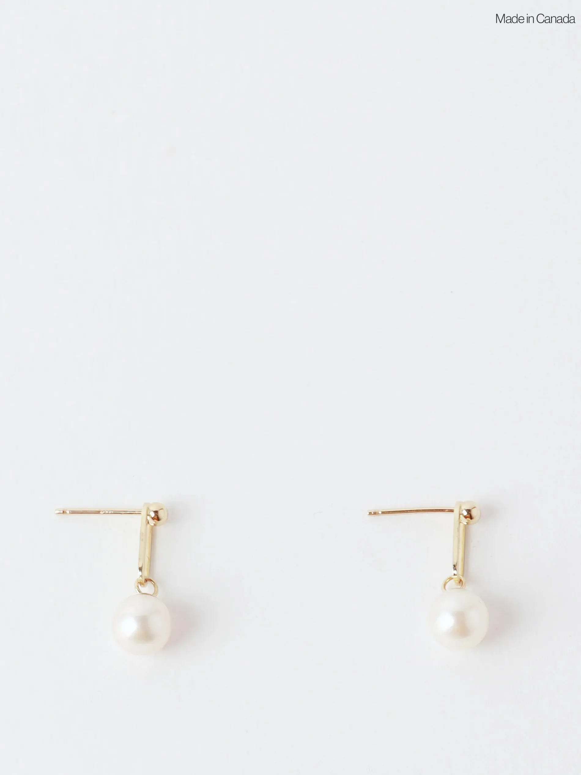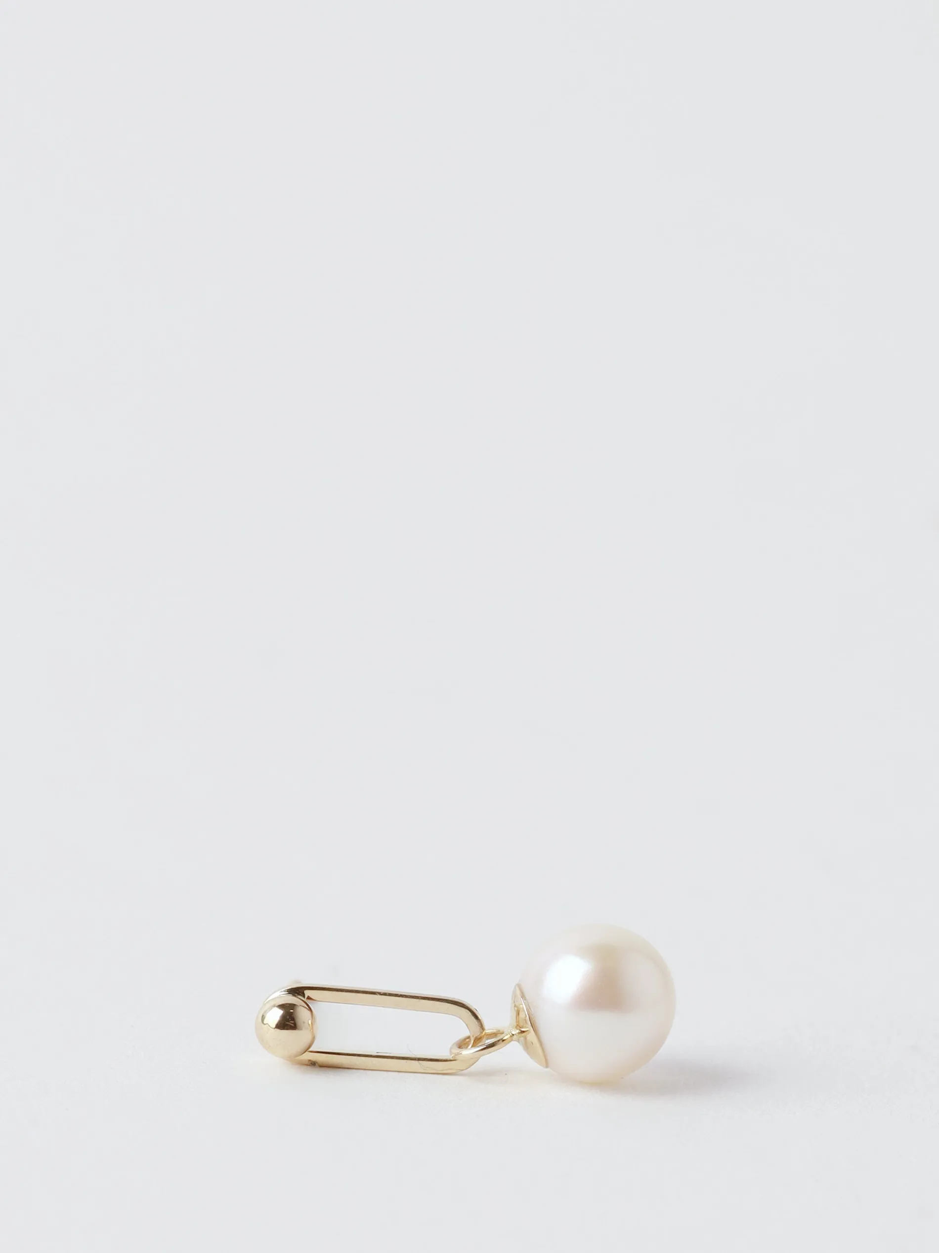 These round pearl drop studs are paired with a 14K gold chain link, blending classic elegance with a modern edge.