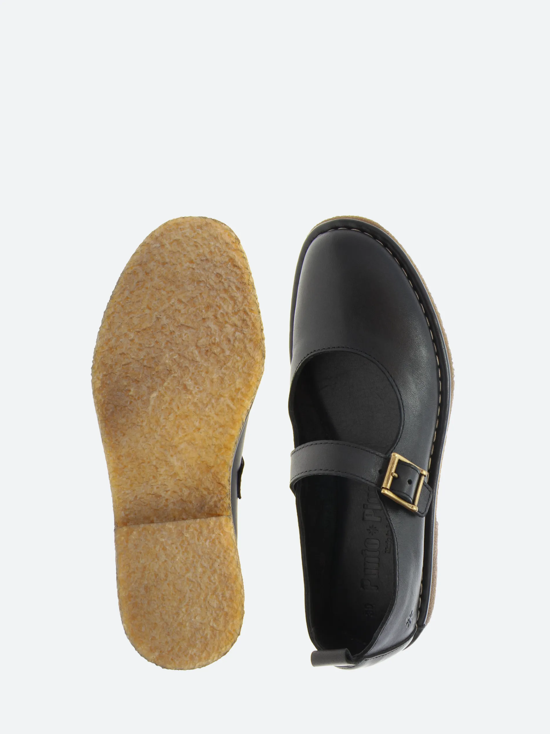 The Punto Pigro Mary-Jane features ankle straps and a round toe, offering a perfect fit with soft leather, an adjustable buckle strap, and a handmade San Crispino seam. This thoughtful design ensures flexibility and long-lasting durability, making these shoes both stylish and comfortable for everyday wear.
