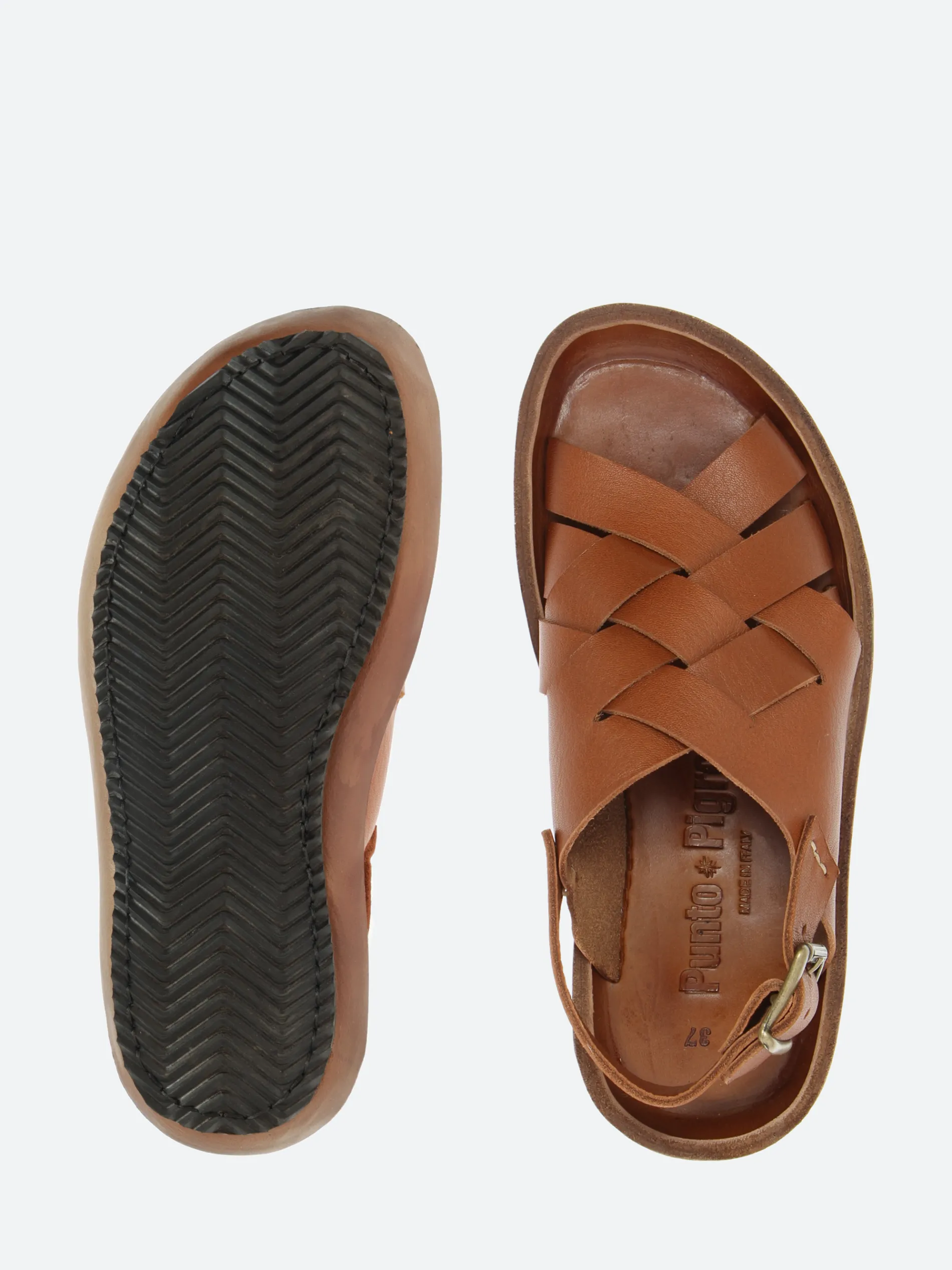 Woven upper sandal with back opening. Made with fine vegetable tanned calf leather through the complex Opanka construction for a perfect ergonomic fit, true comfort and extraordinary flexibility.