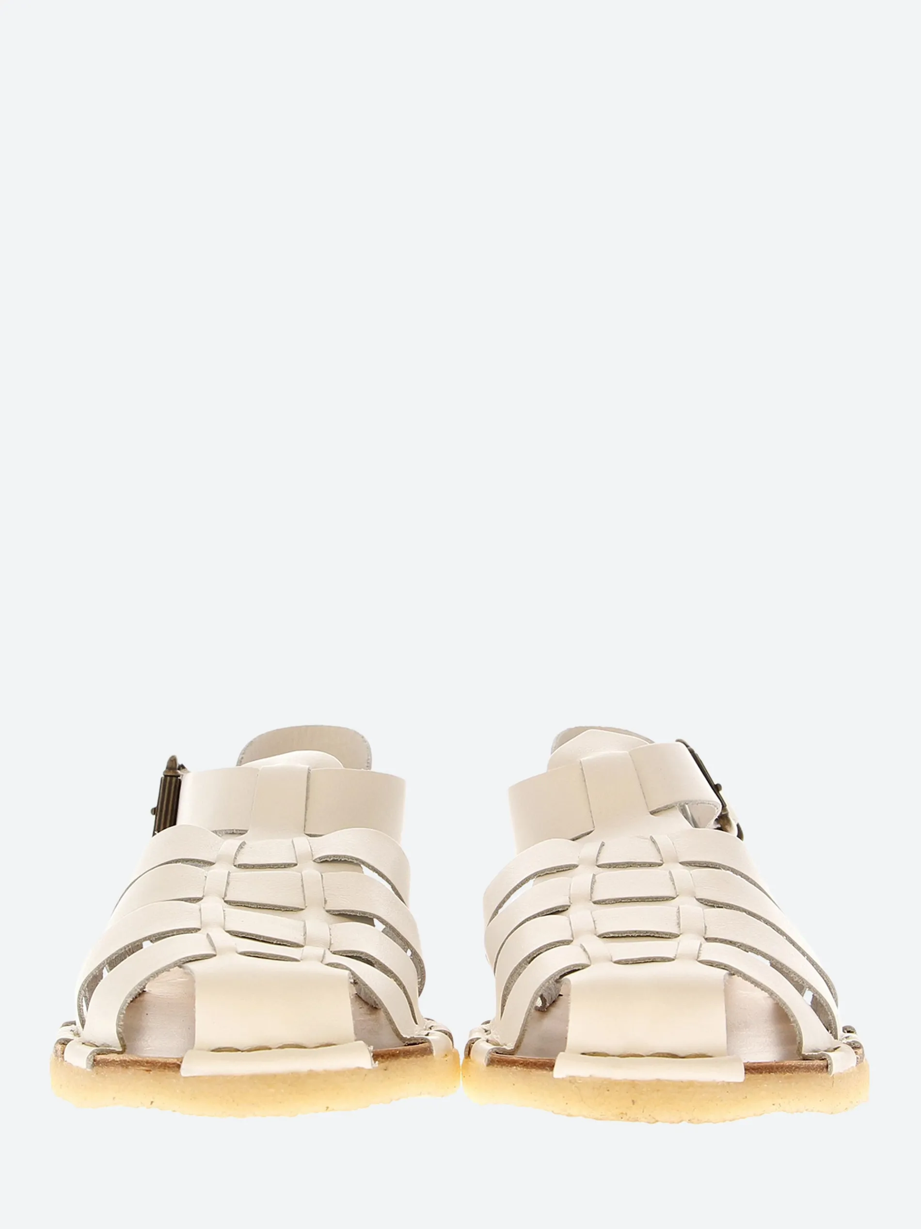 Punto Pigro easy going fisherman sandal featuring cage straps. Perfectly fitting thanks to the raw-cut leather and the handmade San Crispino seam for flexibility and long-lasting durability.