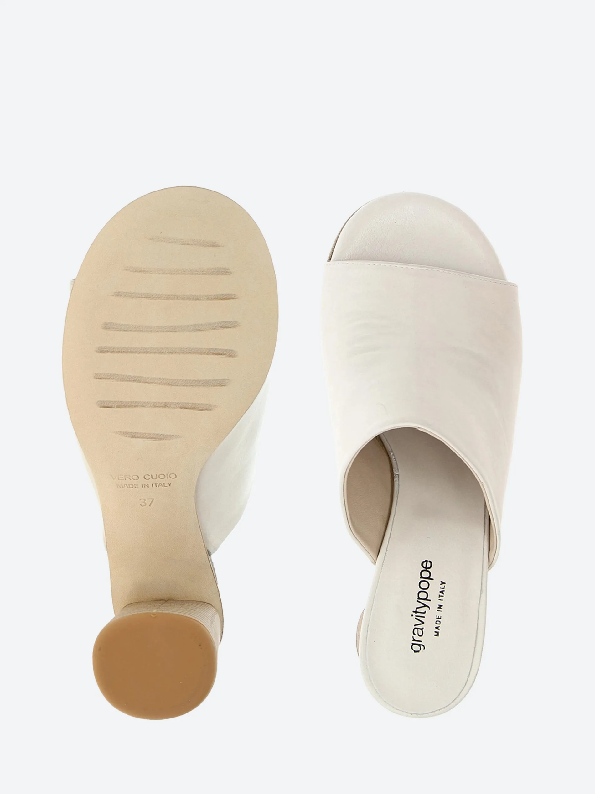 Simply styled, the gravitypope Reese mule sits on a cylindrical block heel.