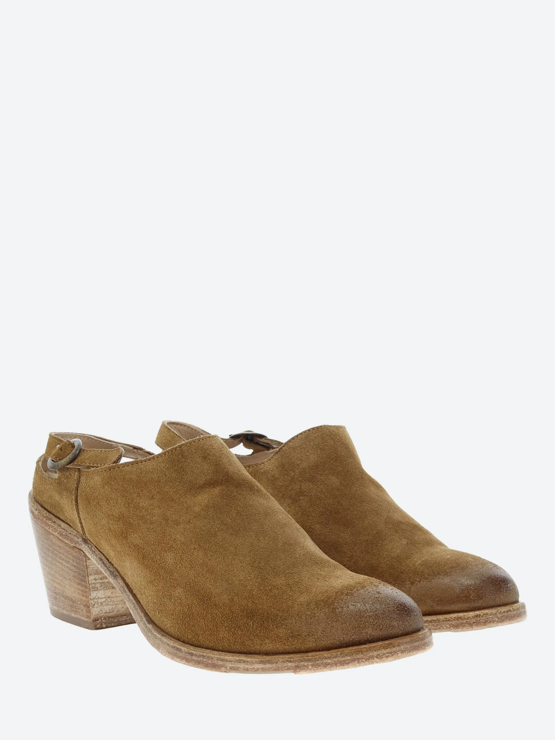 gravitypope minimalist mule with an adjustable heel strap and a Western-inspired toe. Crafted of buttery soft Italian suede.
