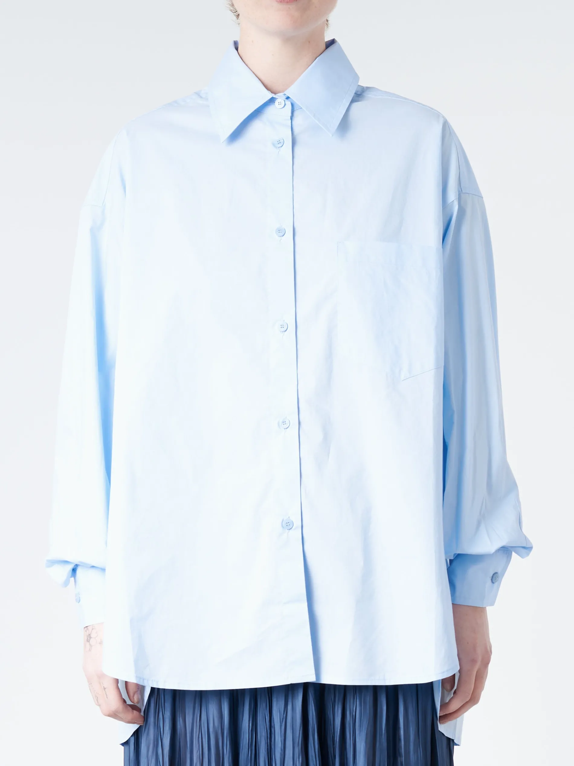 Made of crisp cotton poplin, this oversized button up shirt updates the classic silhouette with its voluminous cut.