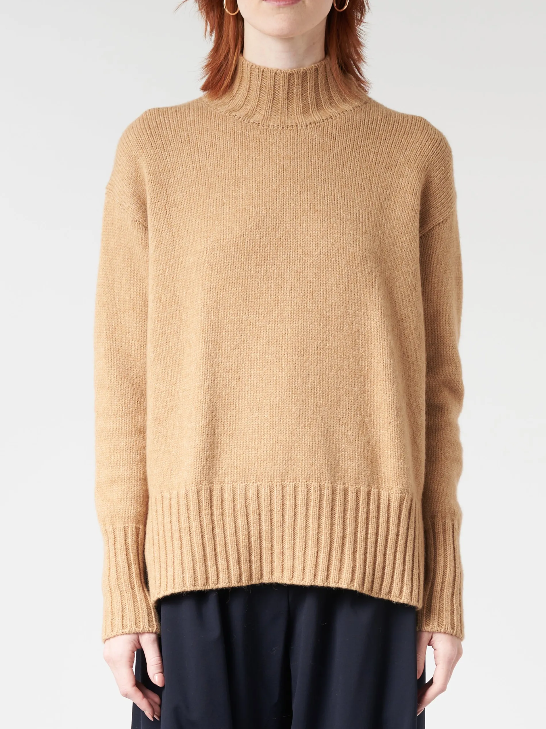 Roberto Collina ribbed panel mockneck sweater in a wool-camel hair blend.
