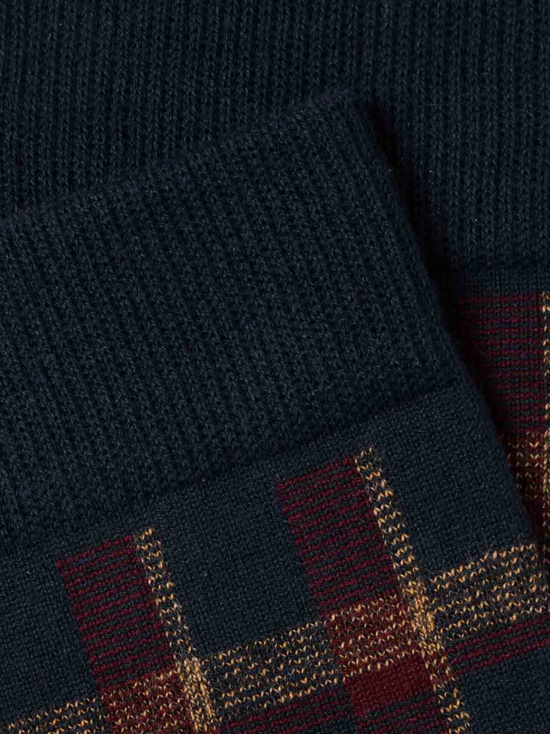 These pair of socks in cotton and polyamide tartan on a blue background.