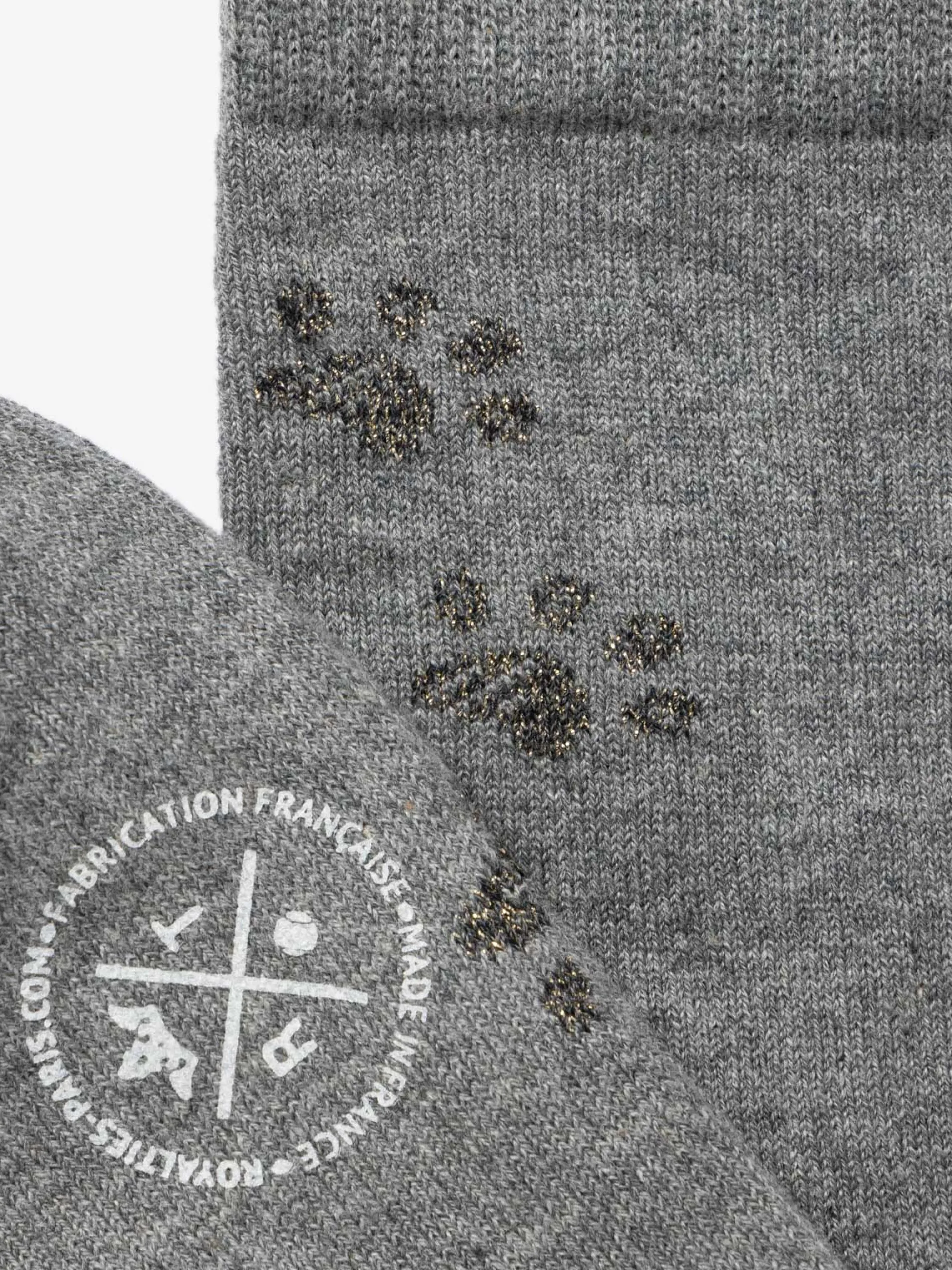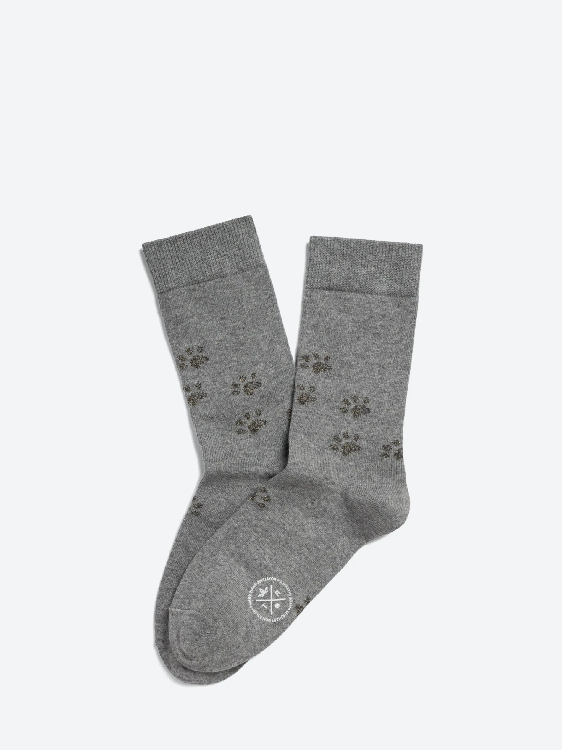 These jacquard socks evoke the traces left by the paws of a cat. The contrast between the matte cotton yarn and lurex shimmer of the pawprints gives this design its playful subtlety.