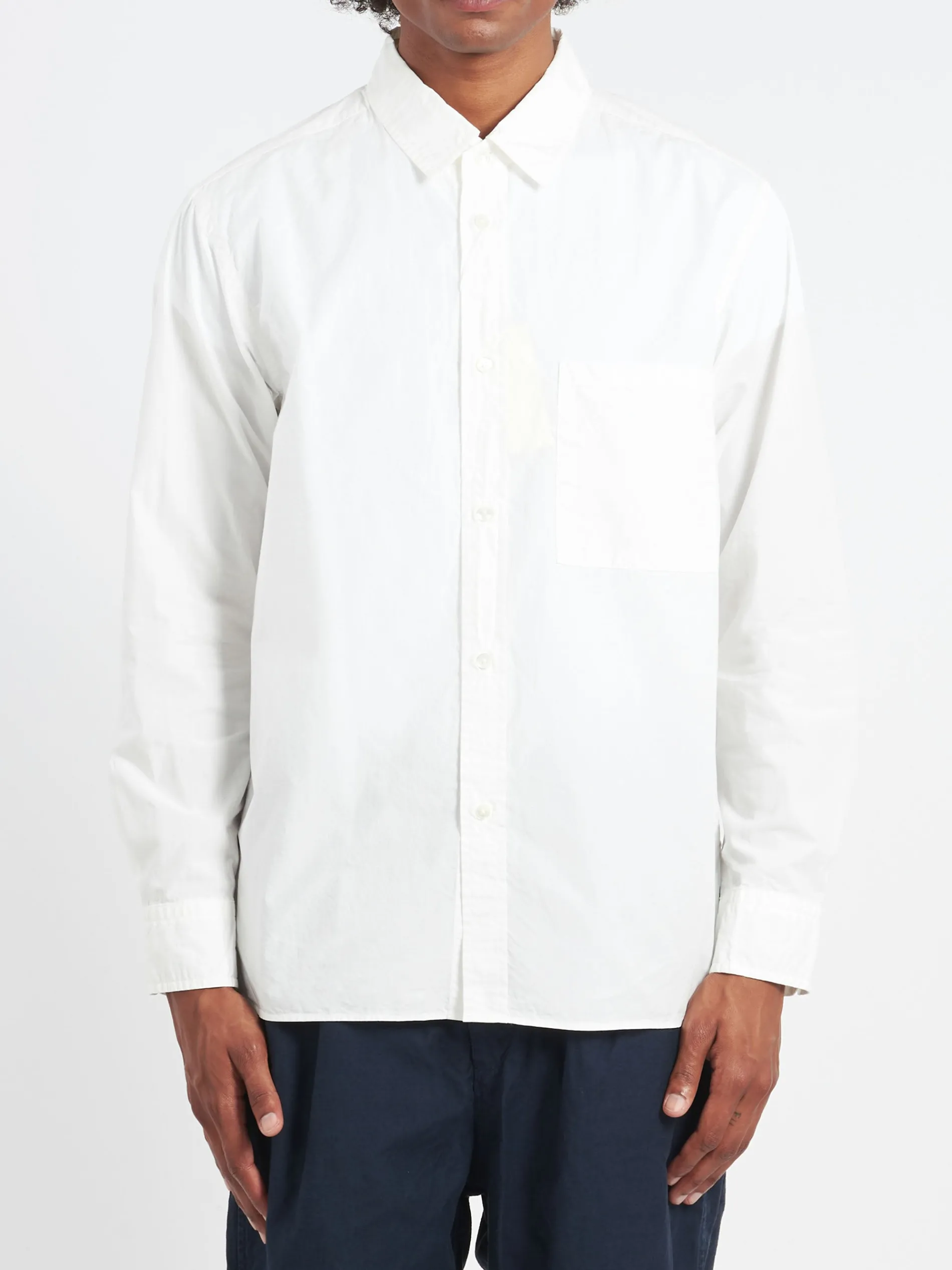 A basic regular collar shirt that is an essential part of your wardrobe. Made from a woven broadcloth using organic cotton.