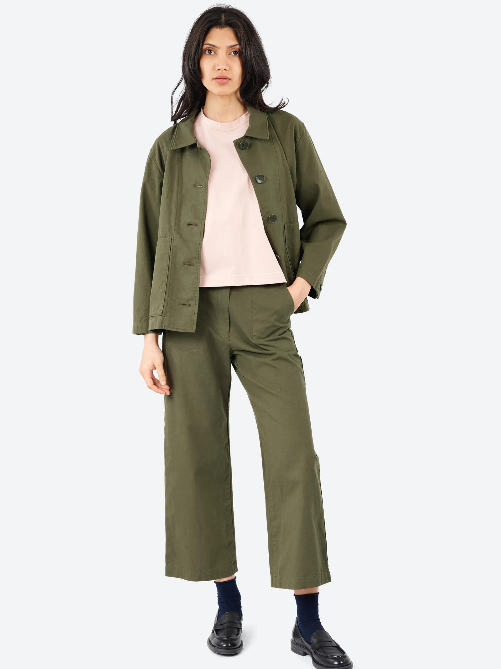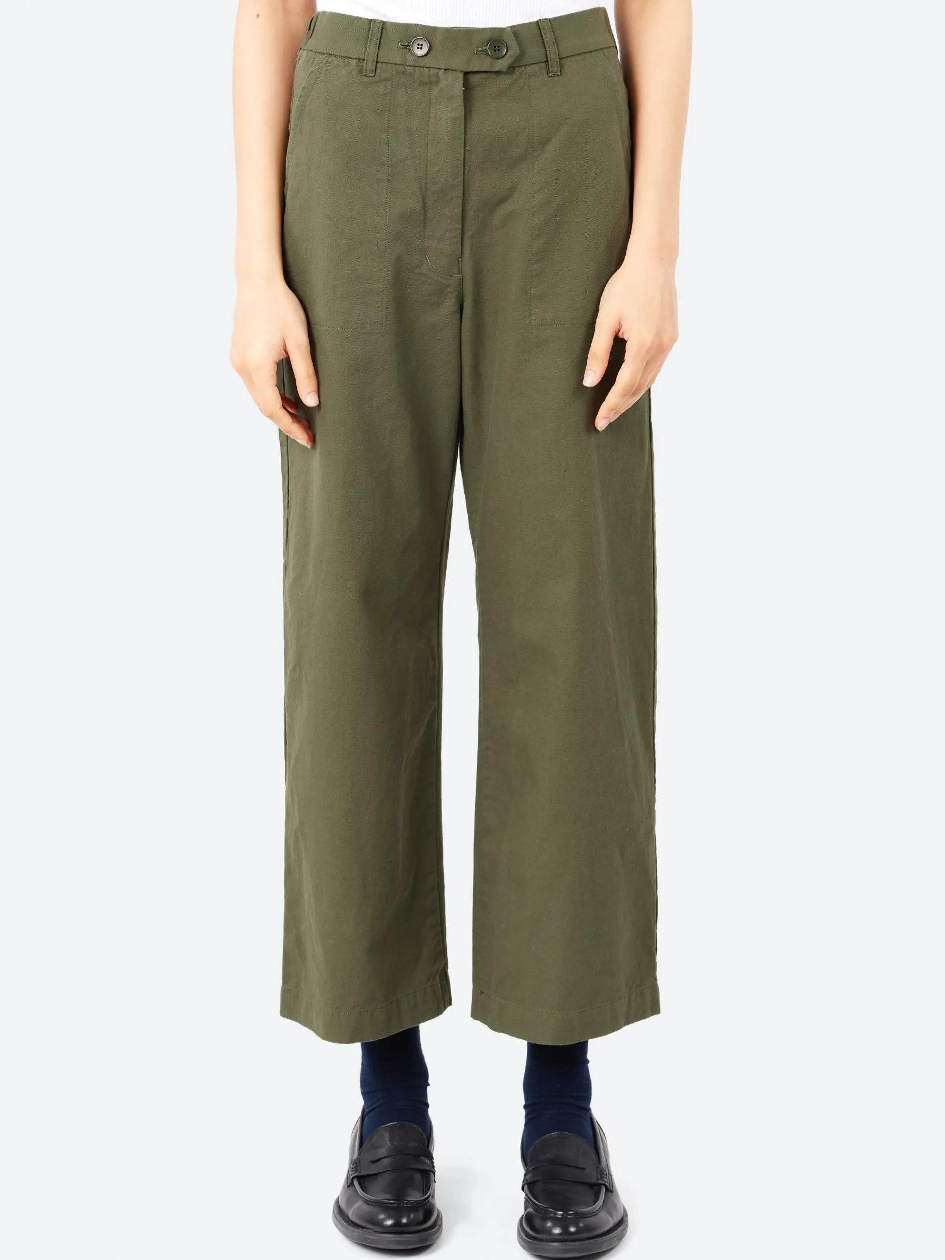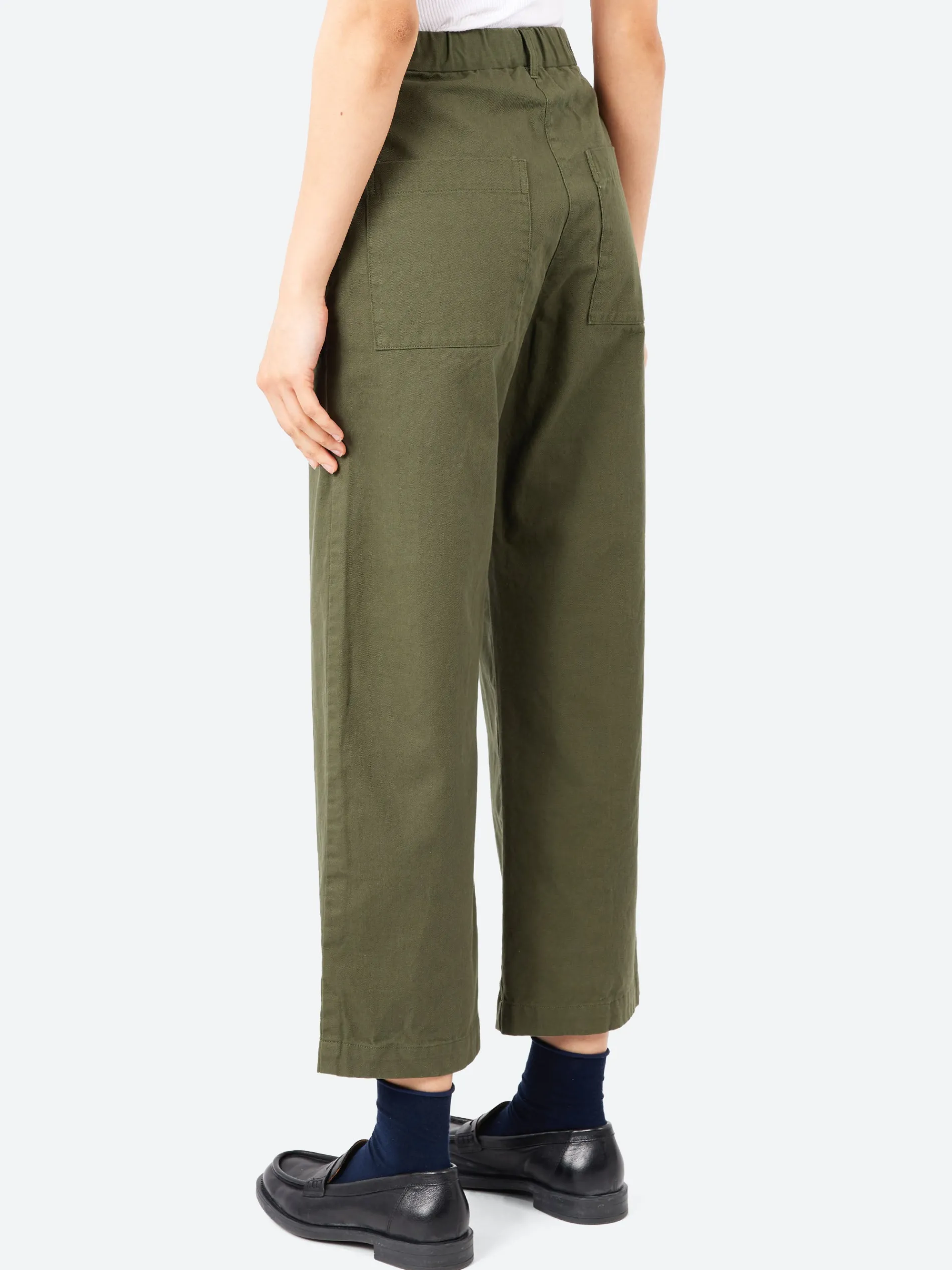 The Carole Pant is crafted from a high twisted twill, a crisp durable fabric with strong thread density that maintains softness.