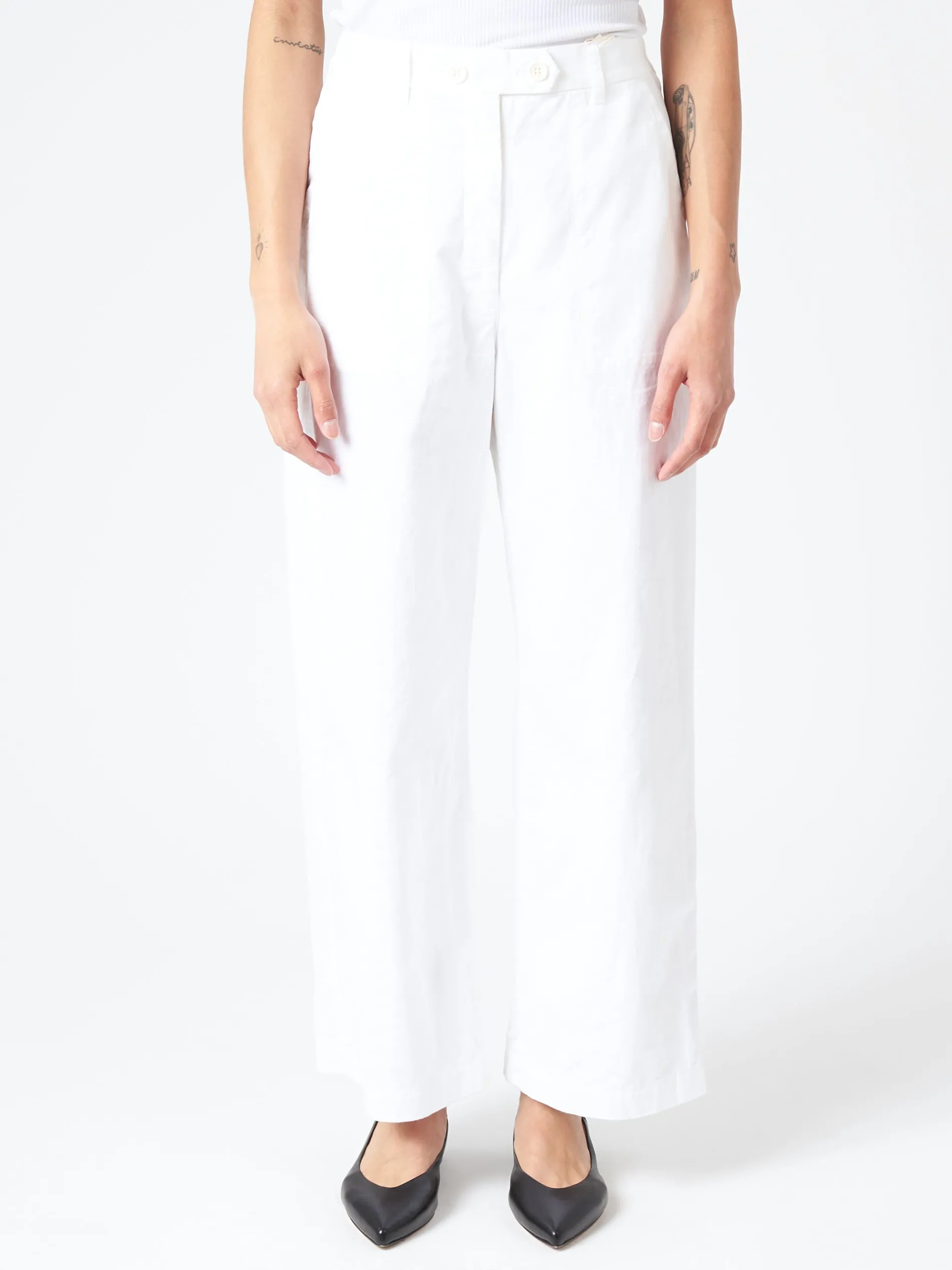 The Carole Pant is crafted from a high twisted twill, a crisp durable fabric with strong thread density that maintains softness.