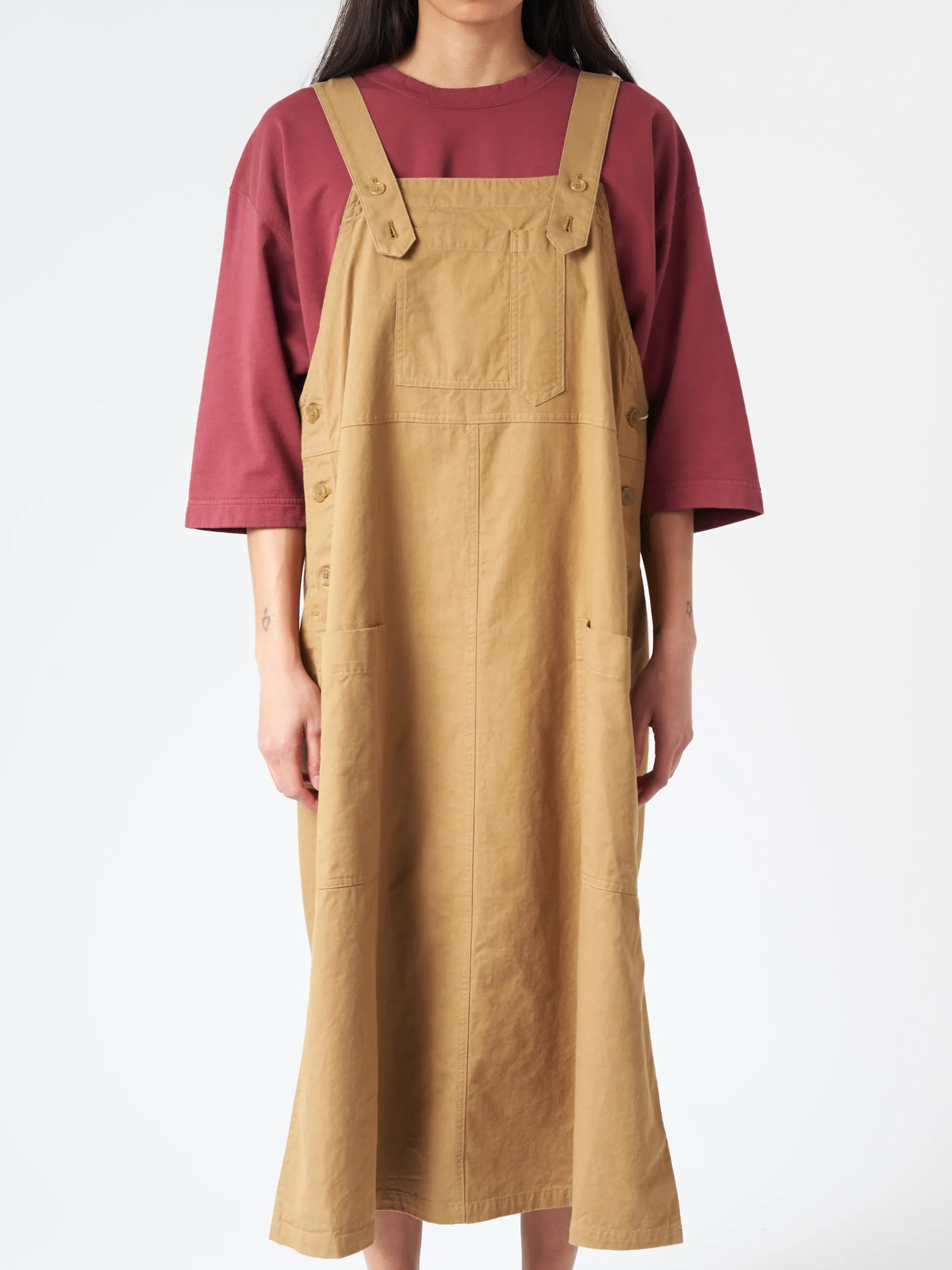 The Sarahwear Ranch jumper dress is made of an organic cotton twill with a utilitarian feel – it can be worn year-round depending on what you layer it with.