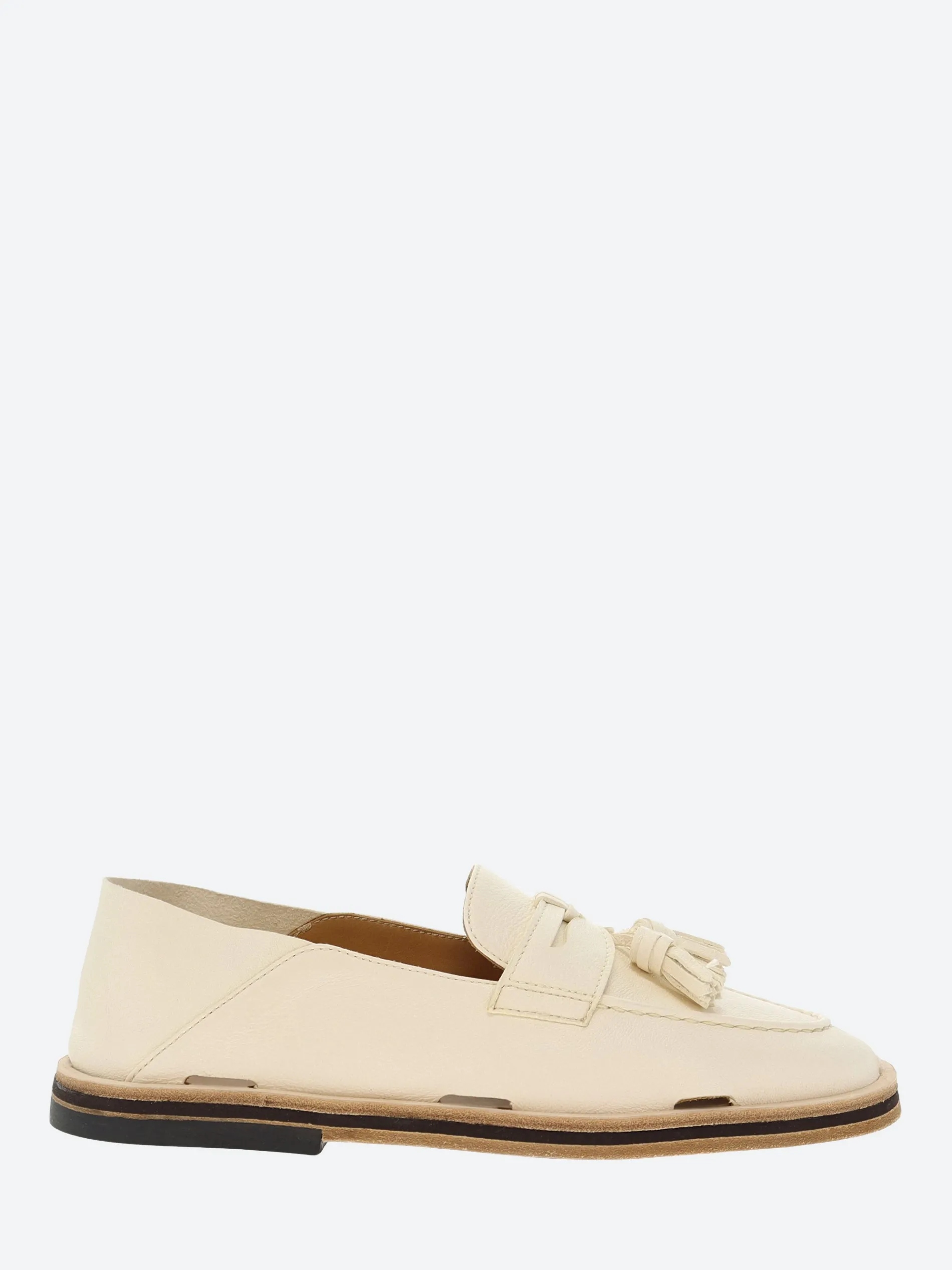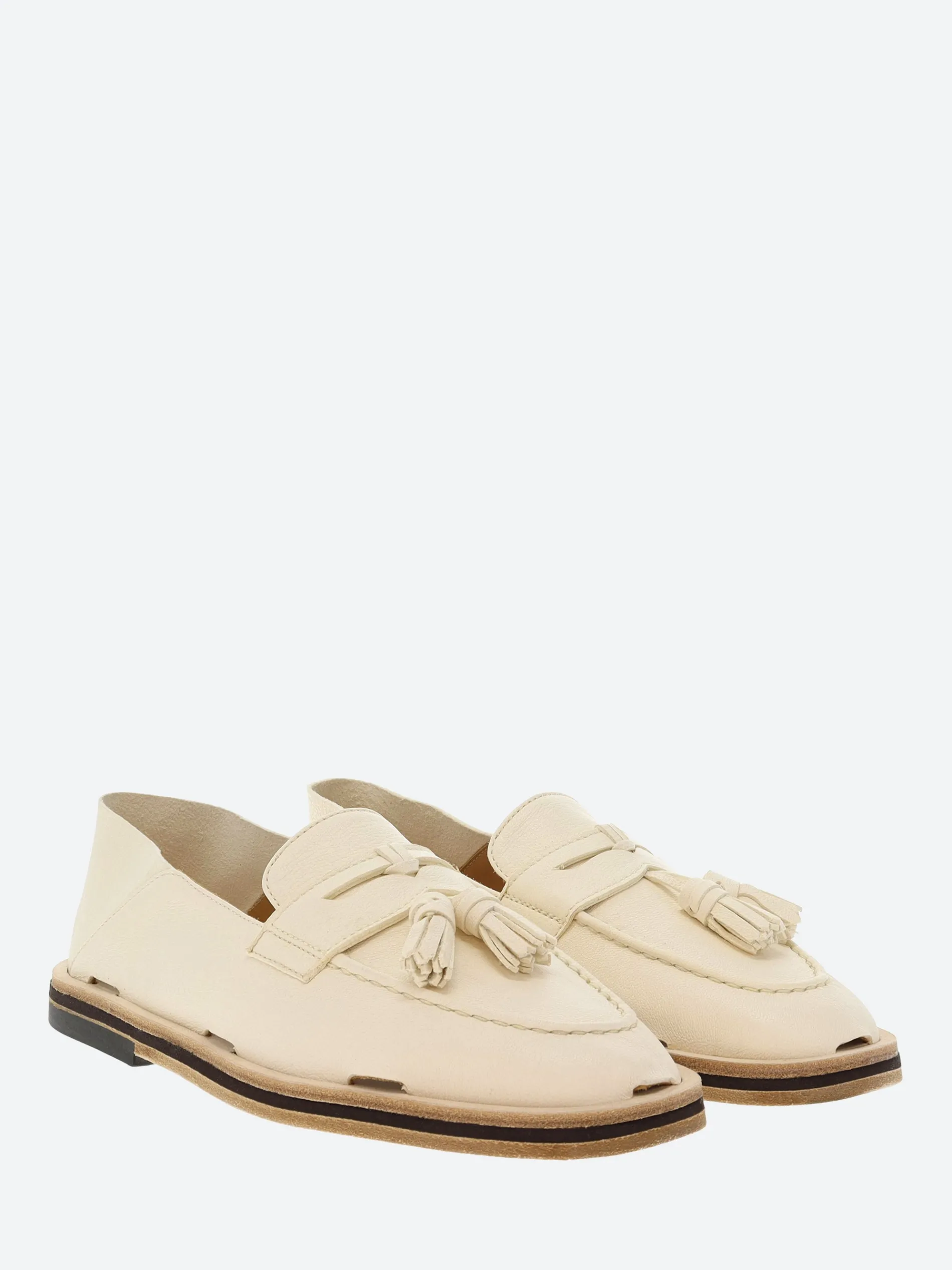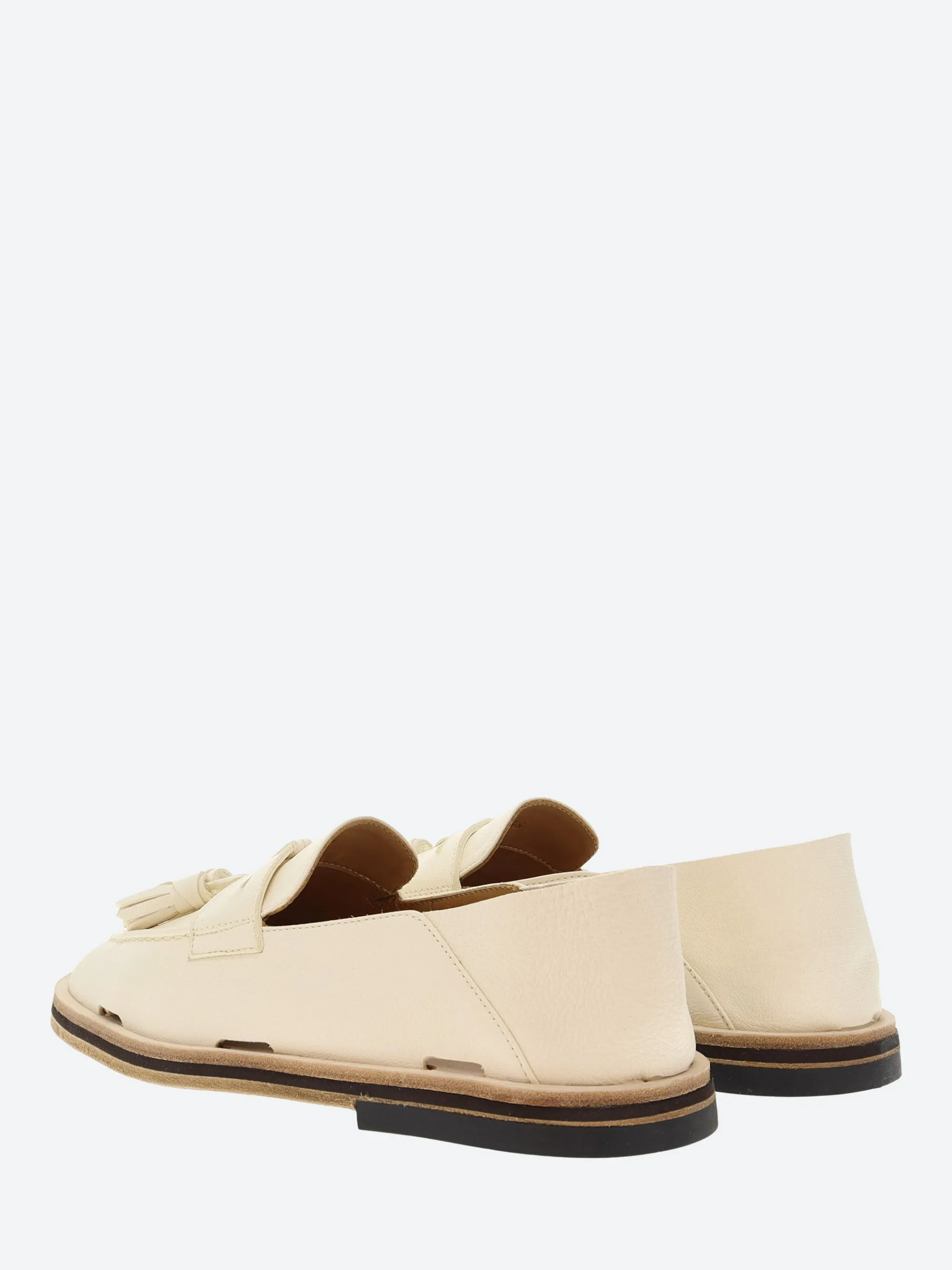 Handsewn loafers in brush off cow skin, calf lining and handmade leather outsole with anti-slip rubber island.