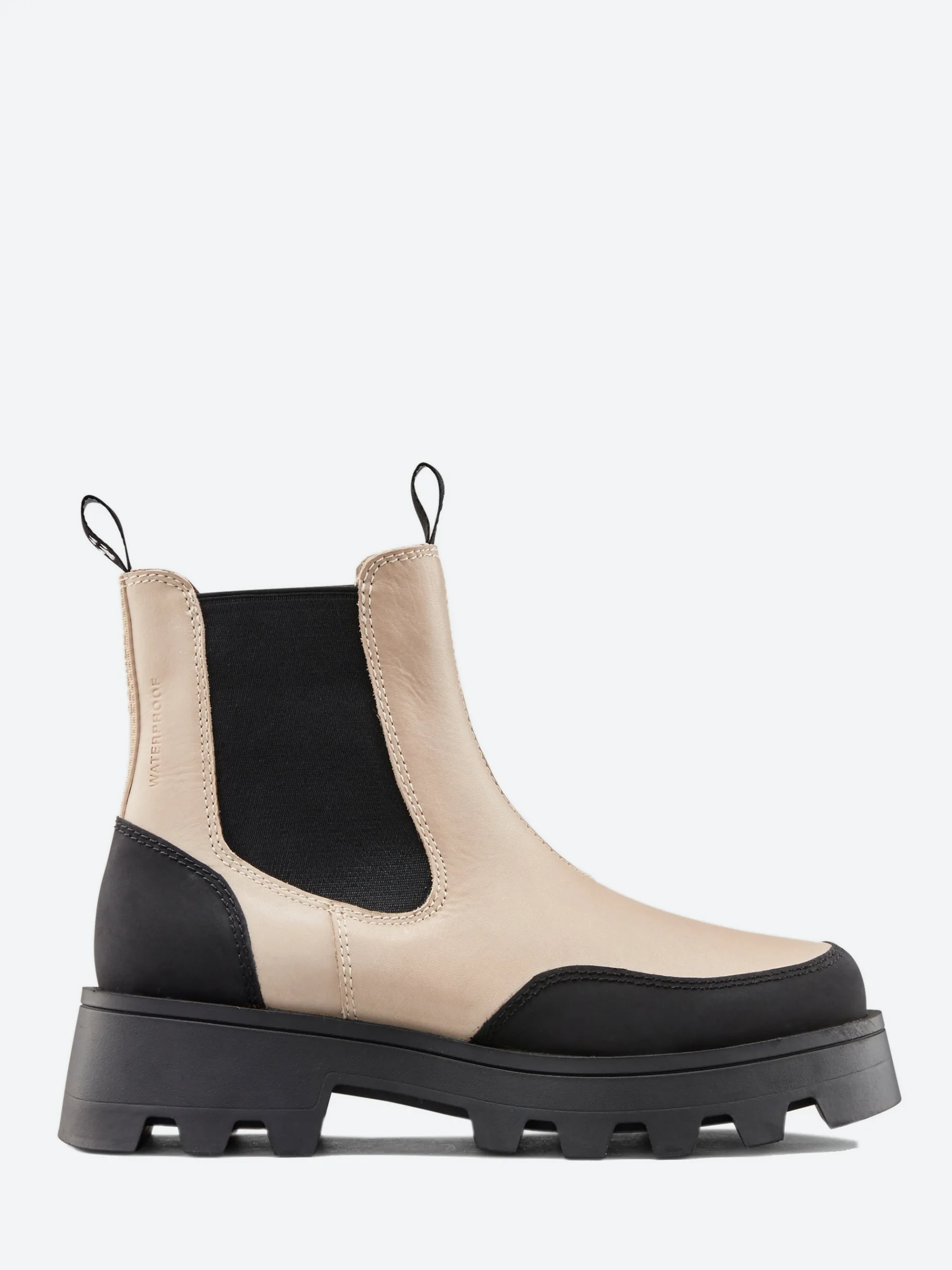 Cougar mid-height pull-on leather and rubber boot sits on a thermoplastic rubber outsole with 2-inch heel.