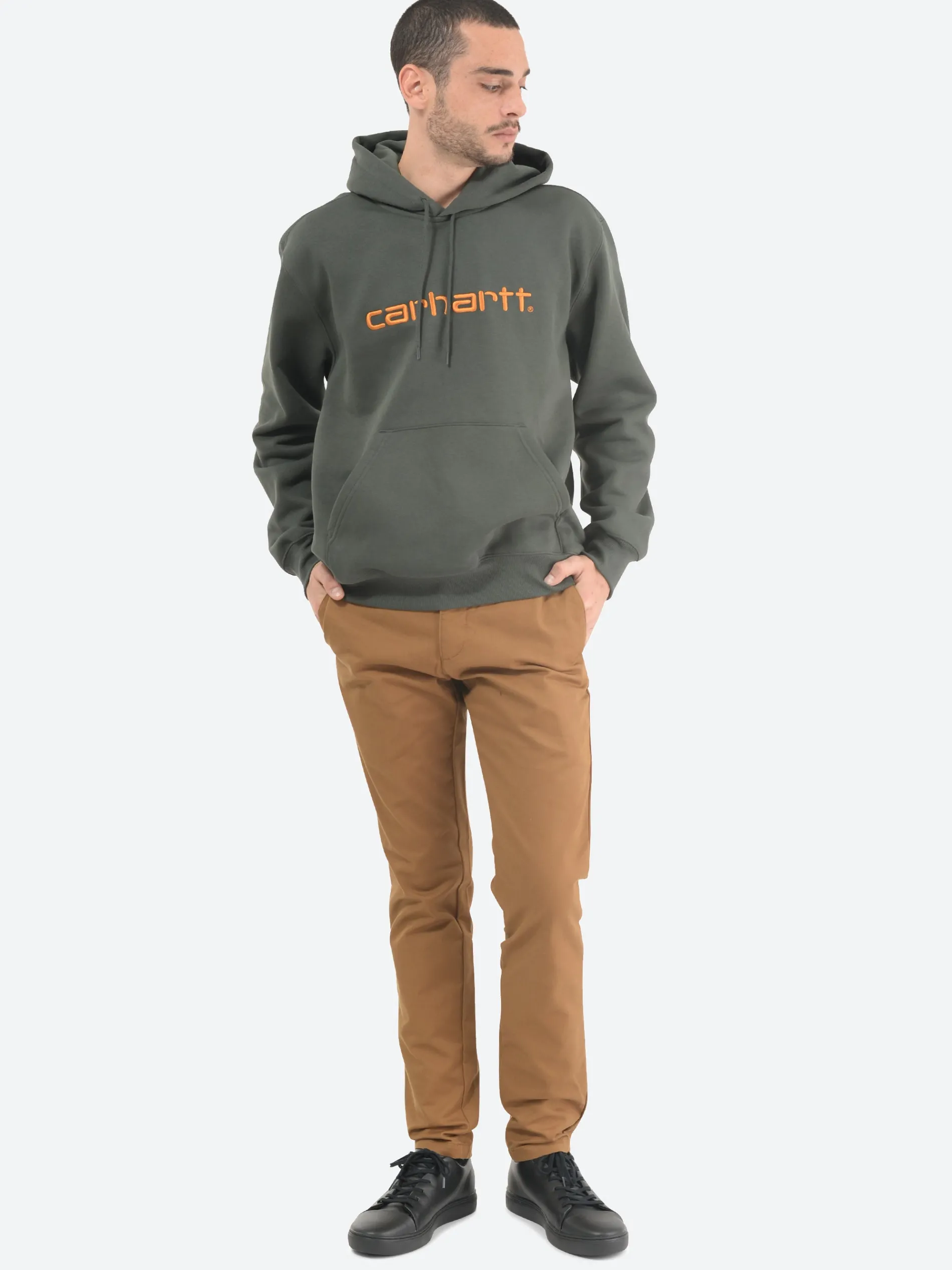 Carhartt WIP’s Sid Pant is a slim tapered trouser featuring flat front styling with a zip fly closure. Details include bartack stitched reinforcements, belt loops, two side pockets and two double welted back pockets. A small, branded patch is included on the back and a lower rise keeps this style current.