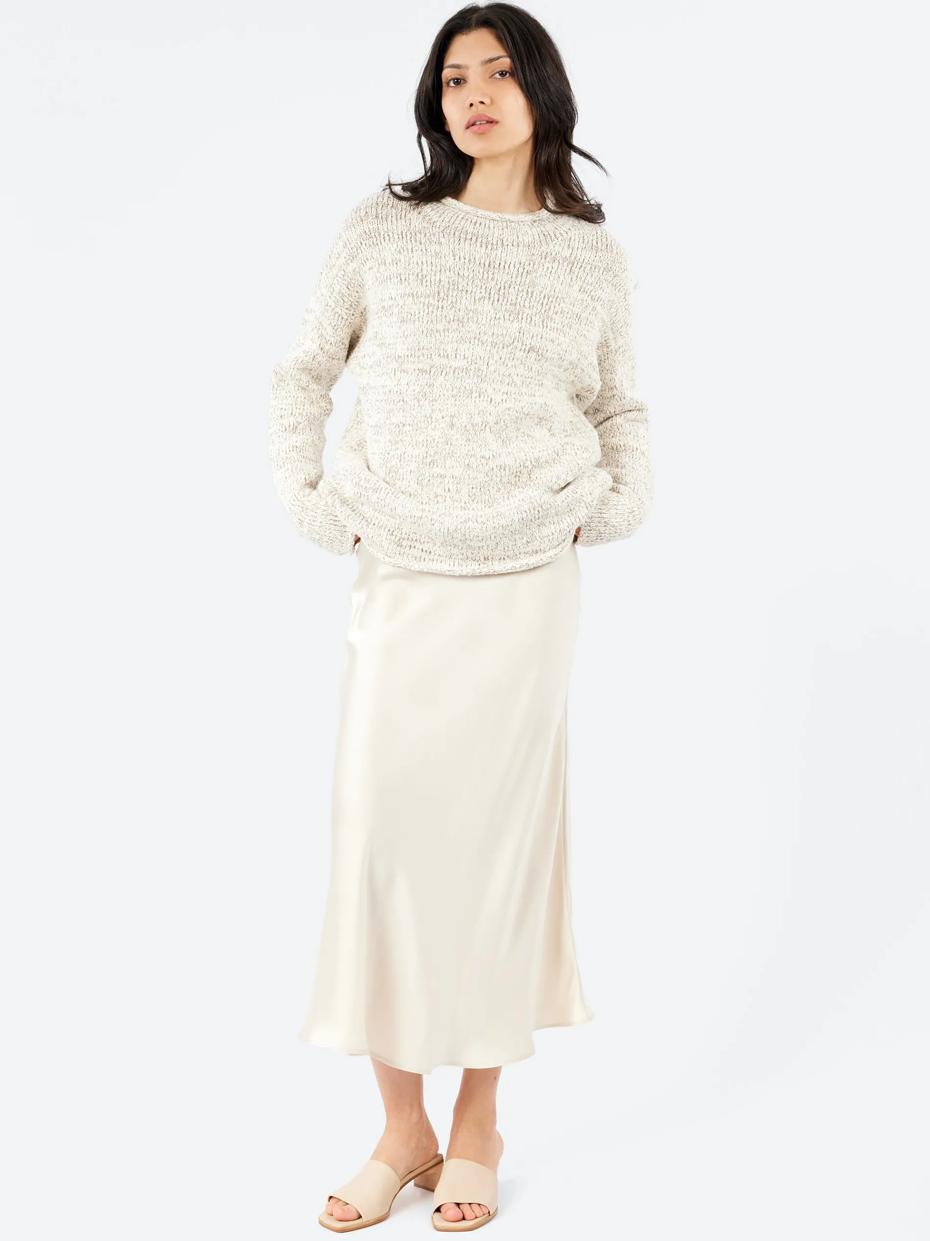 The Silk Laundry Bias Skirt is made from 100% silk, featuring an elasticated waistband for a comfortable fit. Cut on the bias, it creates a flattering silhouette that drapes beautifully, and the ankle-length design adds an elegant touch to the piece.