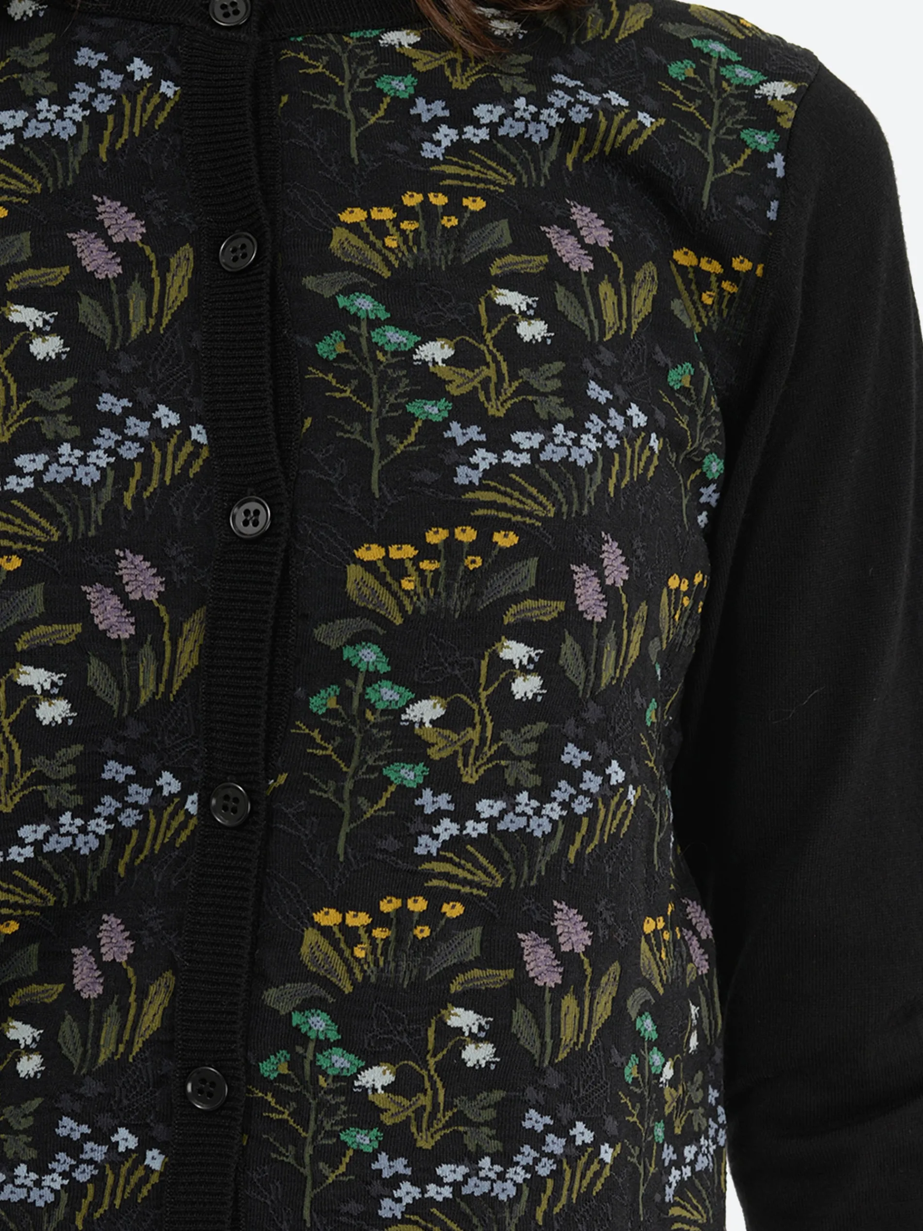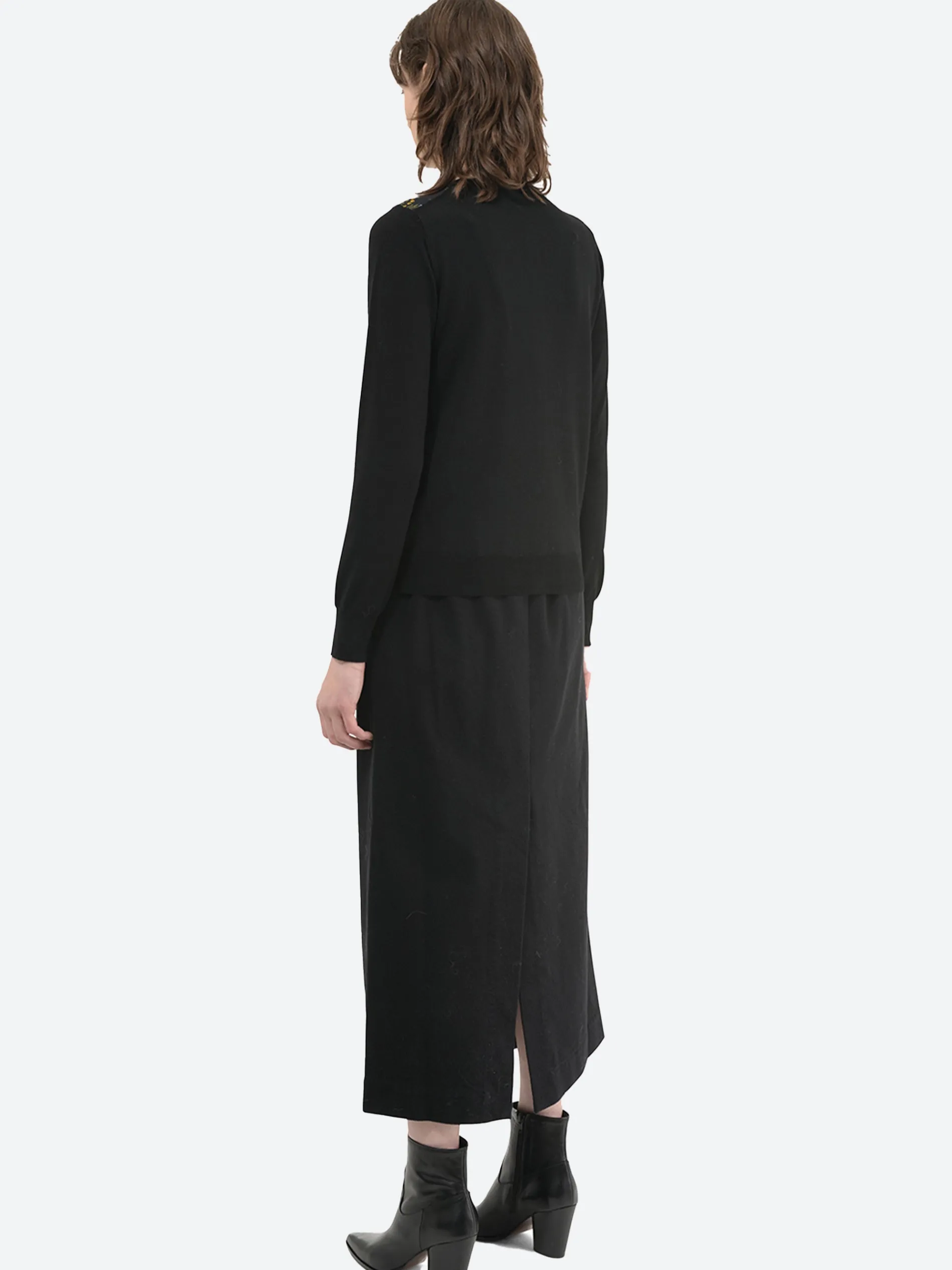 Antipast’s Sock Knit Cardigan is a classic round neck cardigan with ribbed trim. Antipast is known for their intricately delicate knit patterns, and this is a gorgeous example.