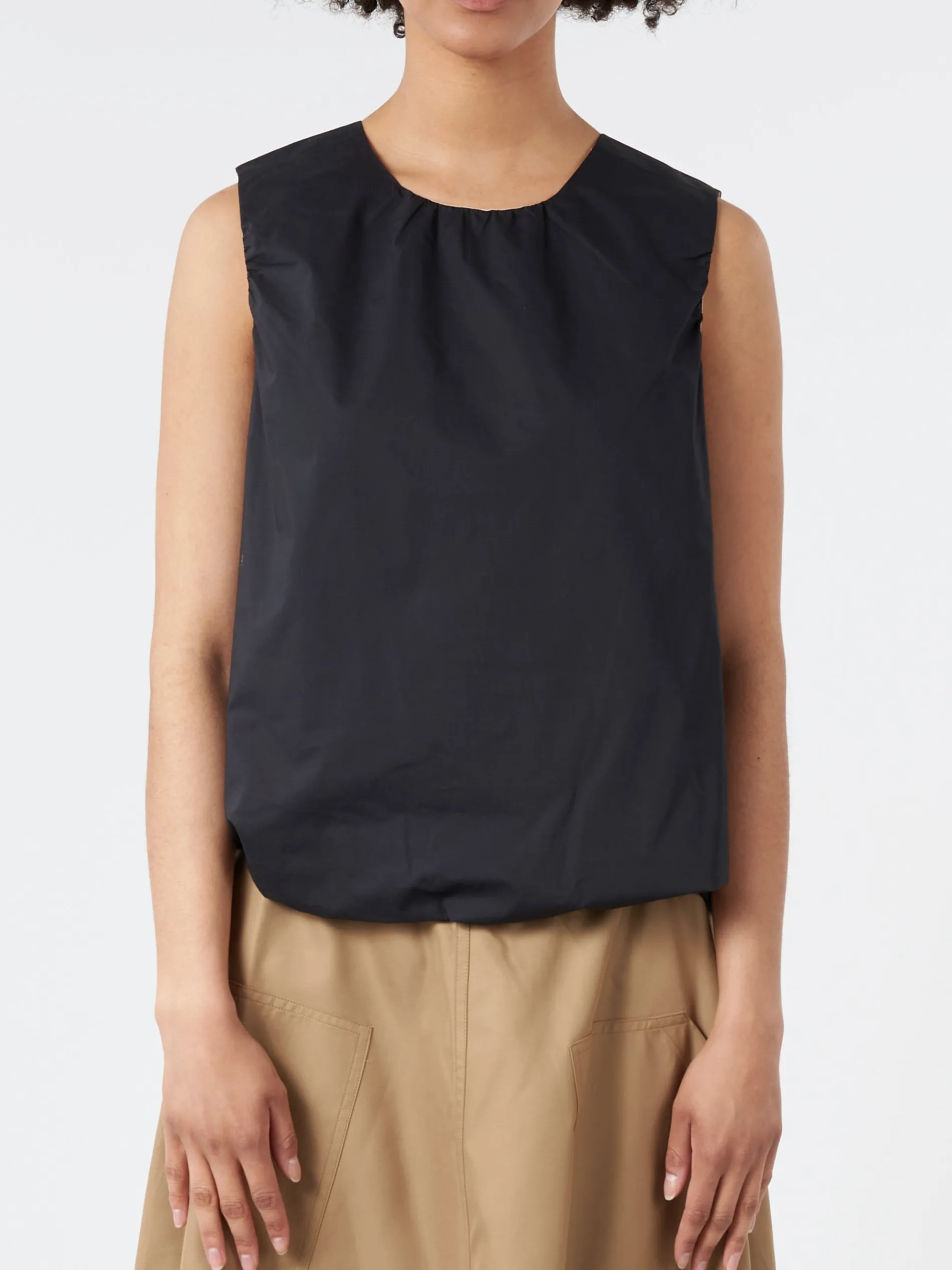 Sofie D’Hoore’s cropped top has a sleeveless design with an elastic hem that accentuates the waistline for a beautiful silhouette.