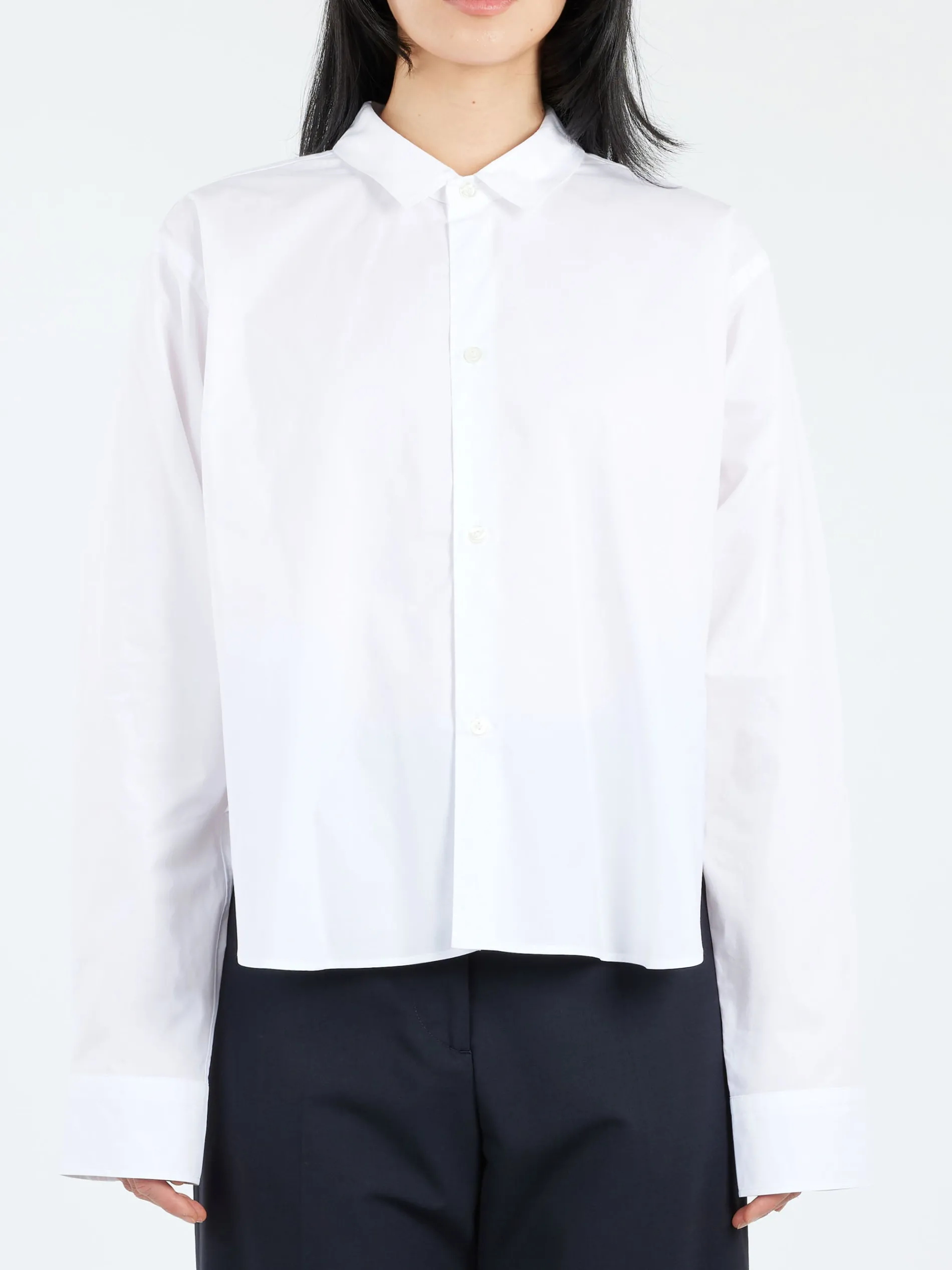 Sofie D’Hoore cropped shirt with a pointed collar in crisp cotton poplin.
