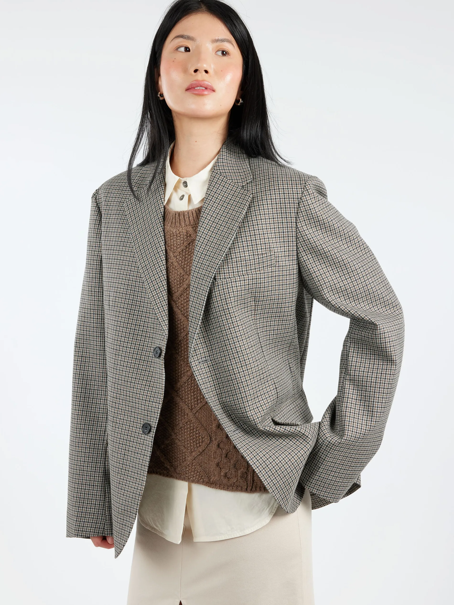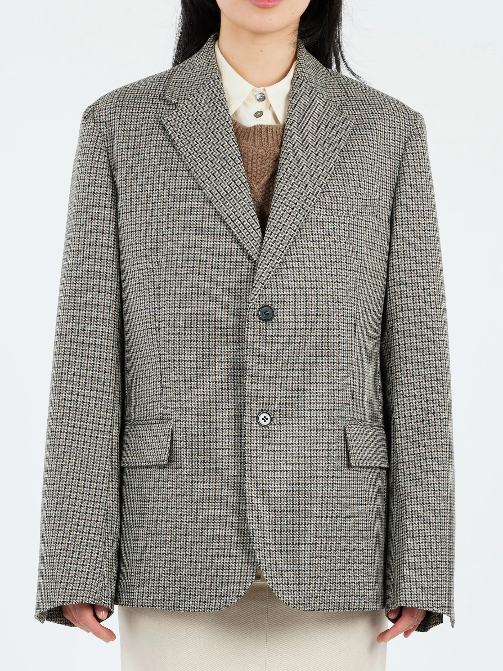 Sofie D’Hoore breasted oversized blazer with notched lapels in wool houndstooth.