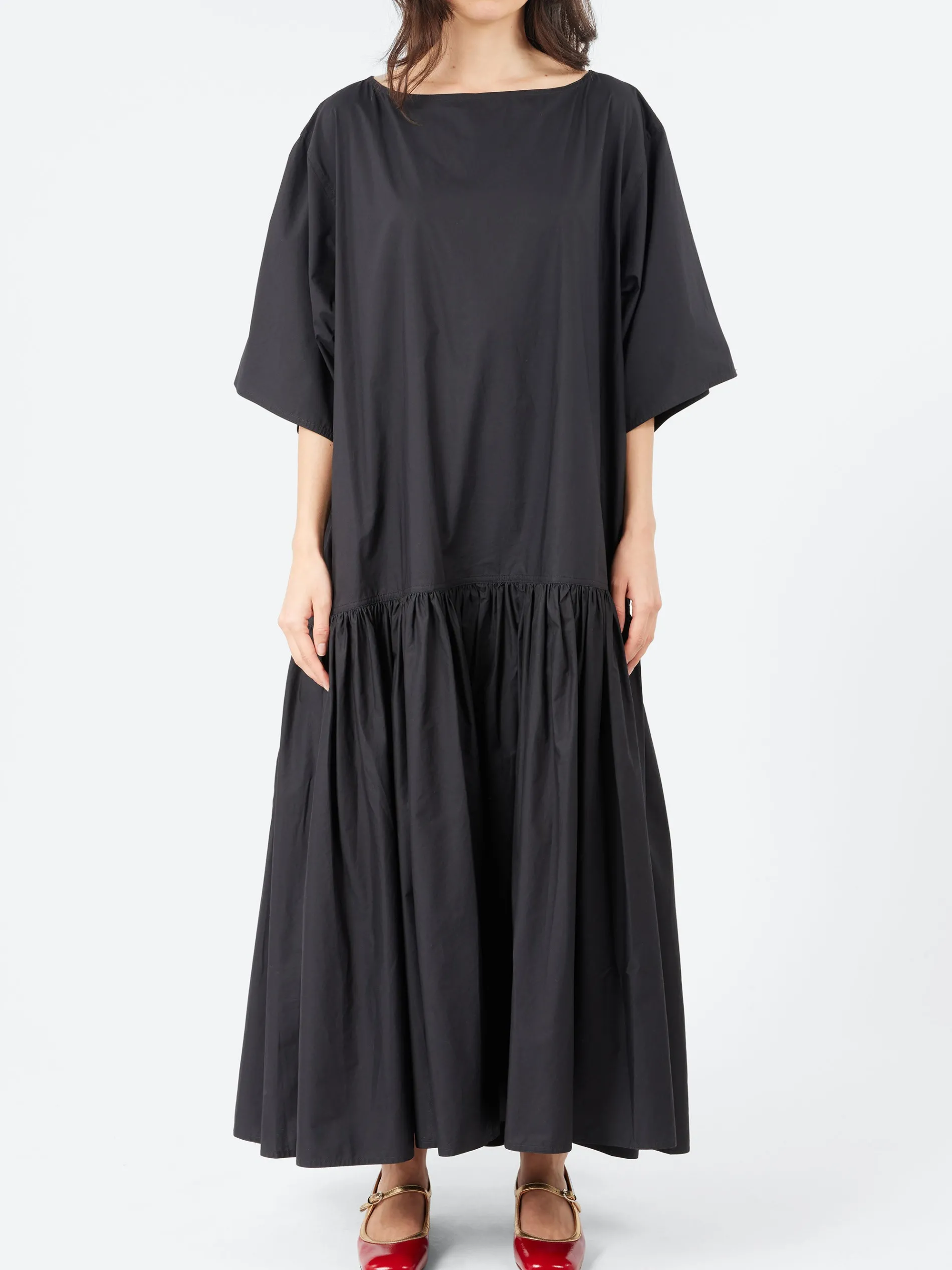 The Sofie D’Hoore Della dress is a timeless piece crafted from soft, breathable 100% cotton. It features a flattering boat neckline and short sleeves, creating a clean, streamlined silhouette. The dress is designed with ruched detailing, adding texture and movement to the fabric. Additionally, two side inset pockets provide functionality. With its relaxed fit, the Della Maxi Dress effortlessly combines comfort and sophistication, making it a versatile choice for a variety of occasions.