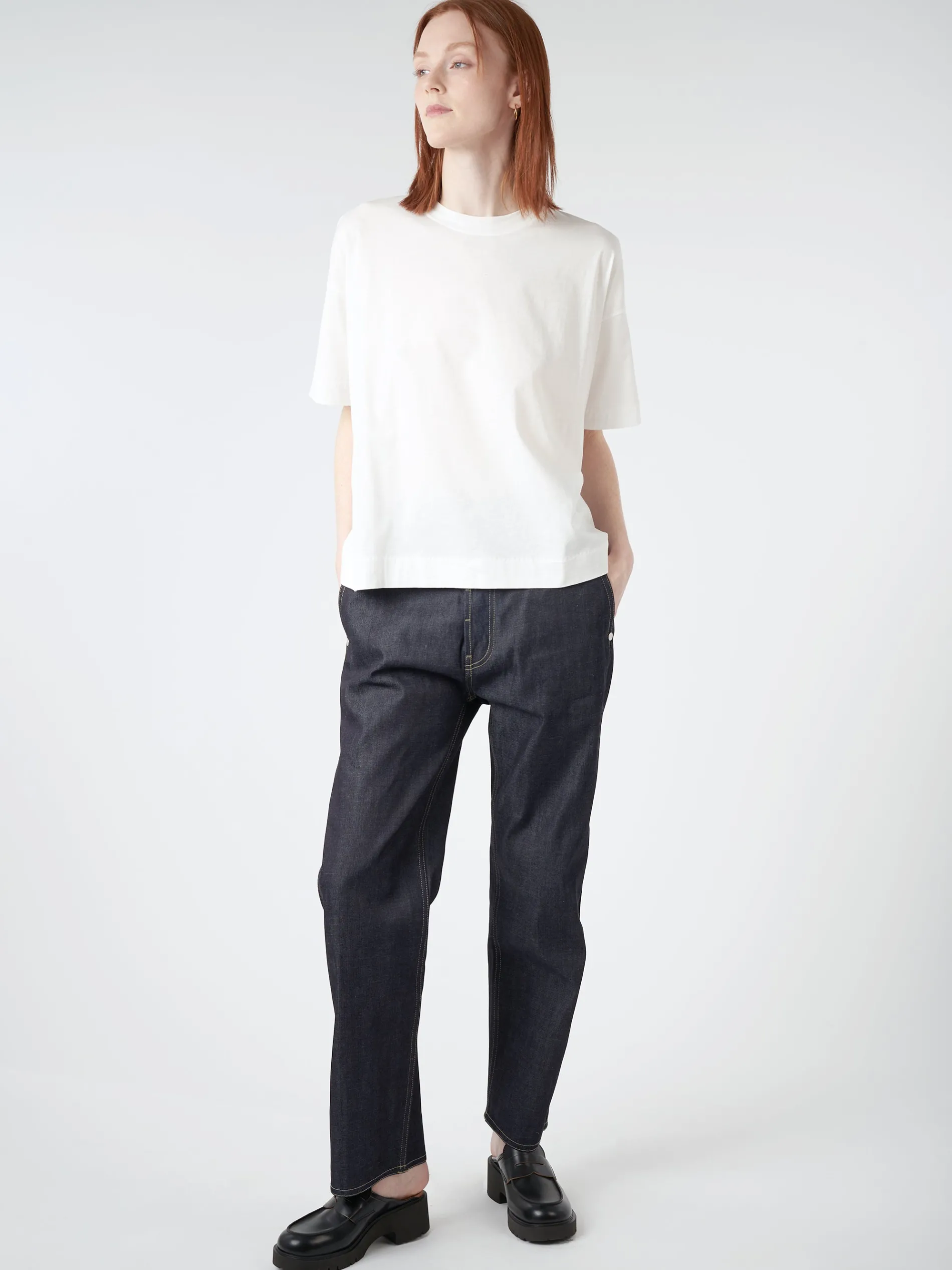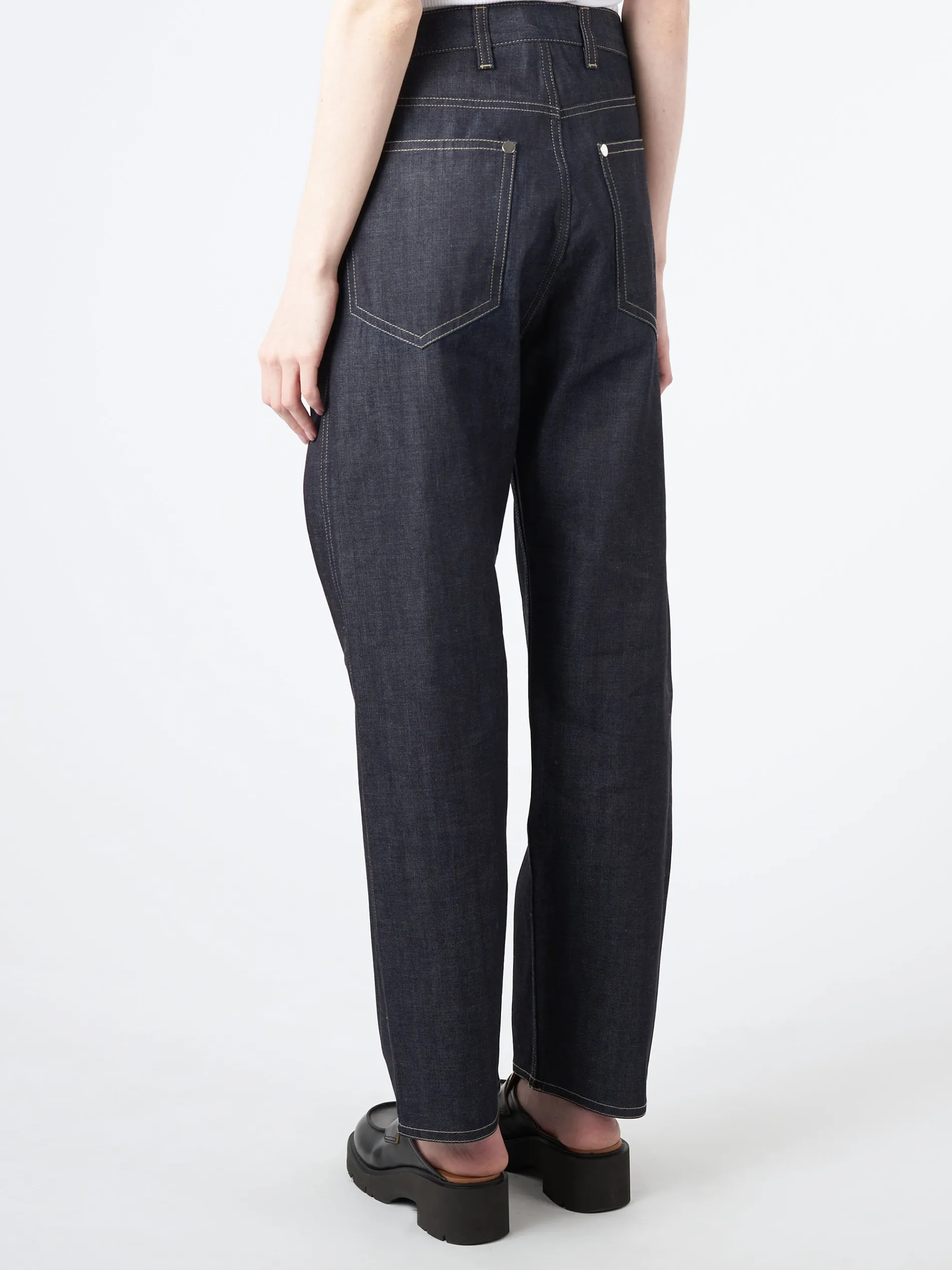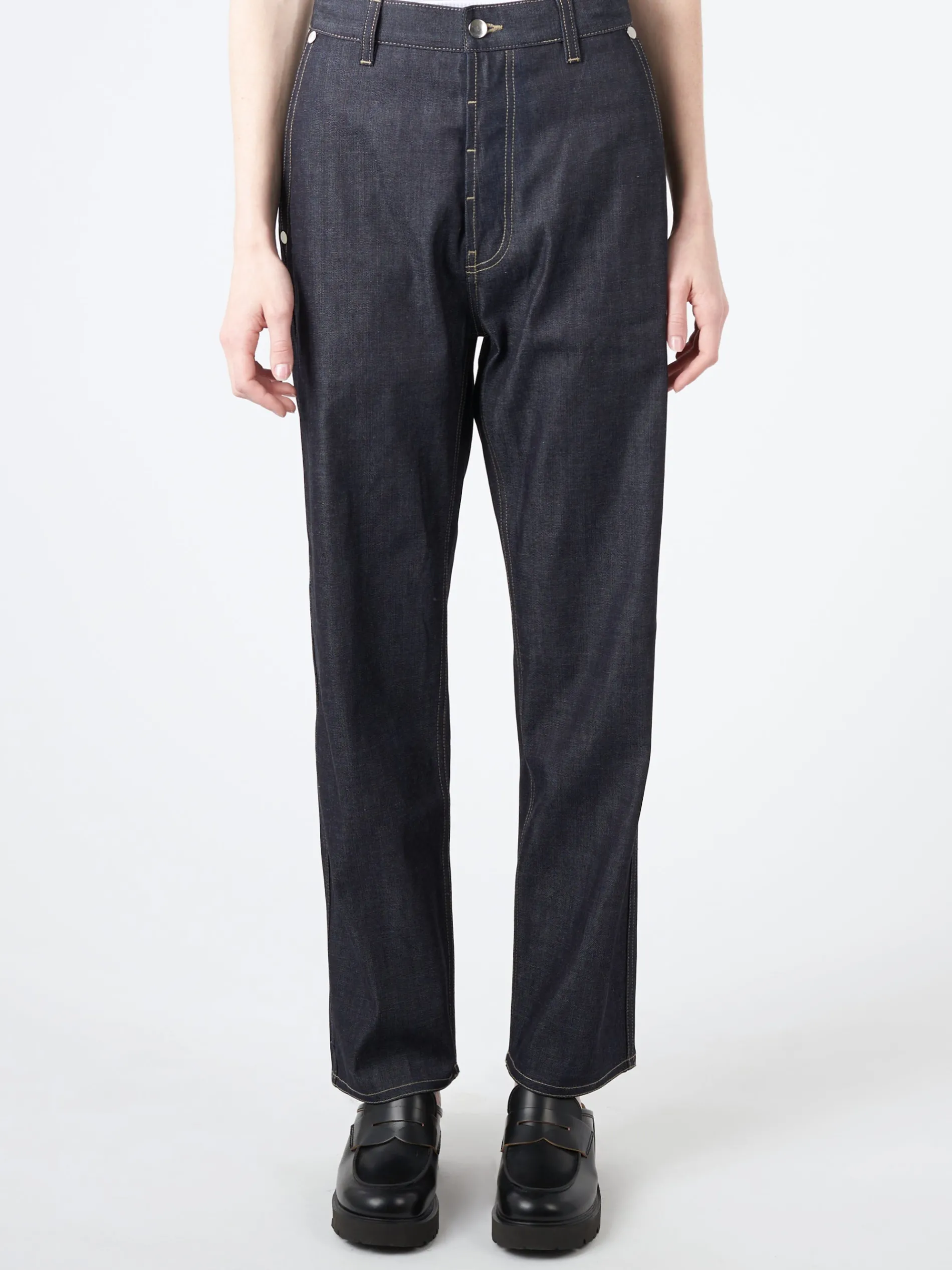Sofie D’Hoore denim jeans with a mid-rise fit in raw indigo denim. Features silver-tone rivets throughout.
