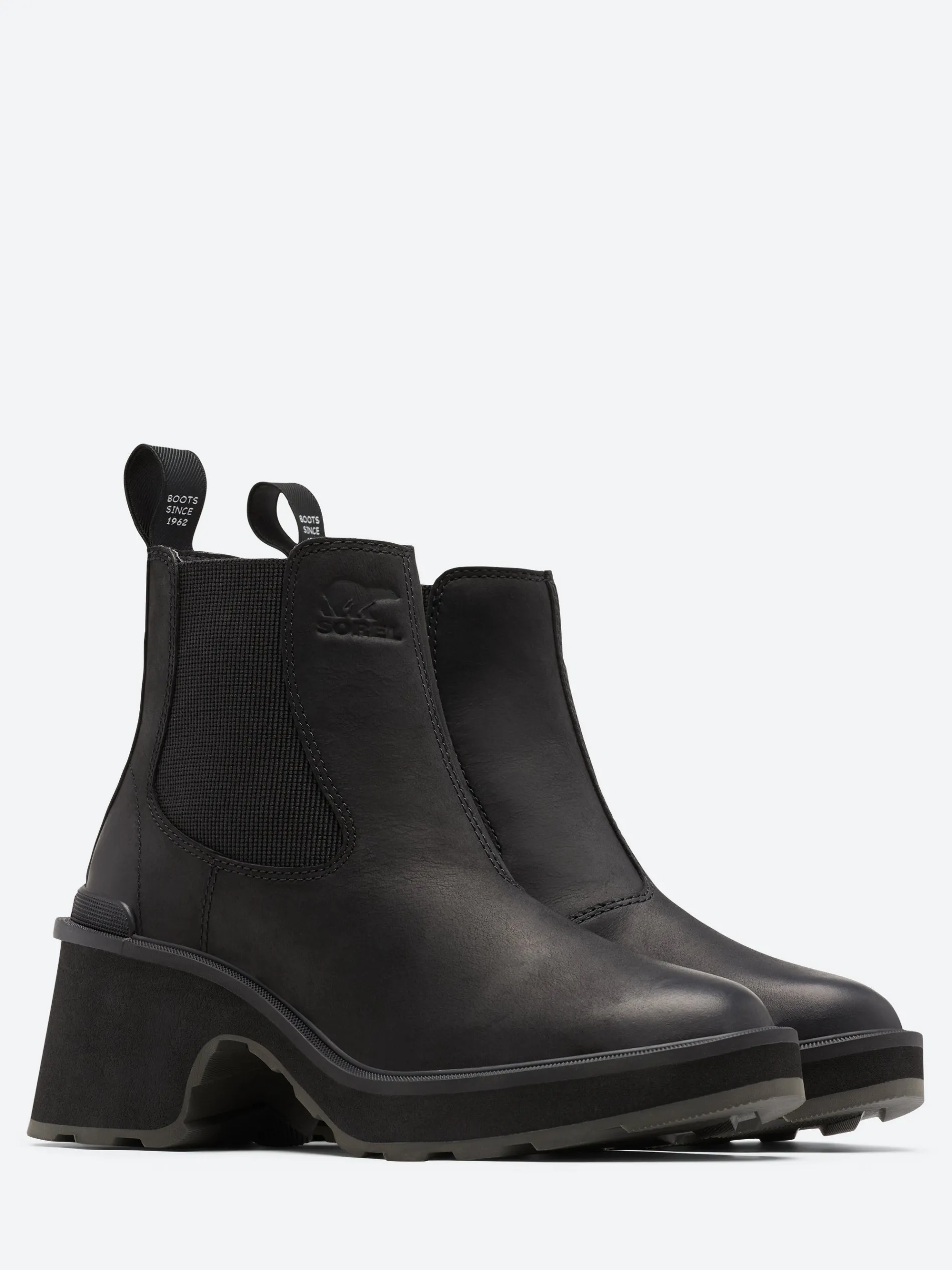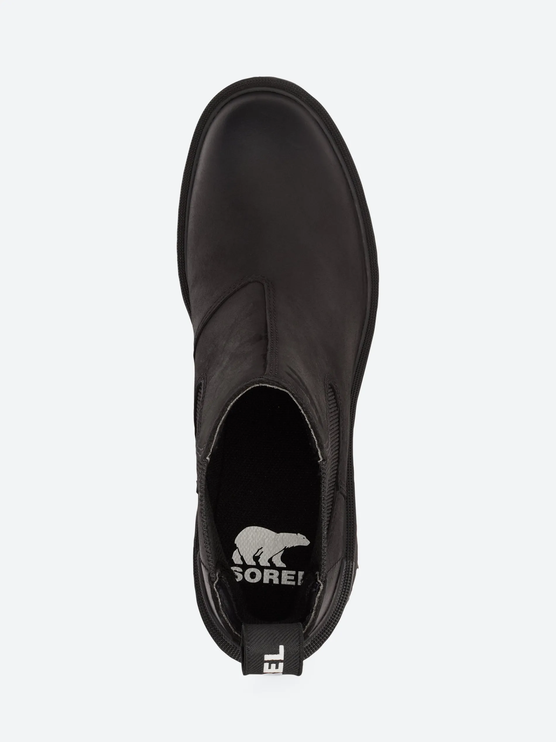 Sorel Chelsea boot crafted from waterproof leather and sits on a lightweight traction sole.
