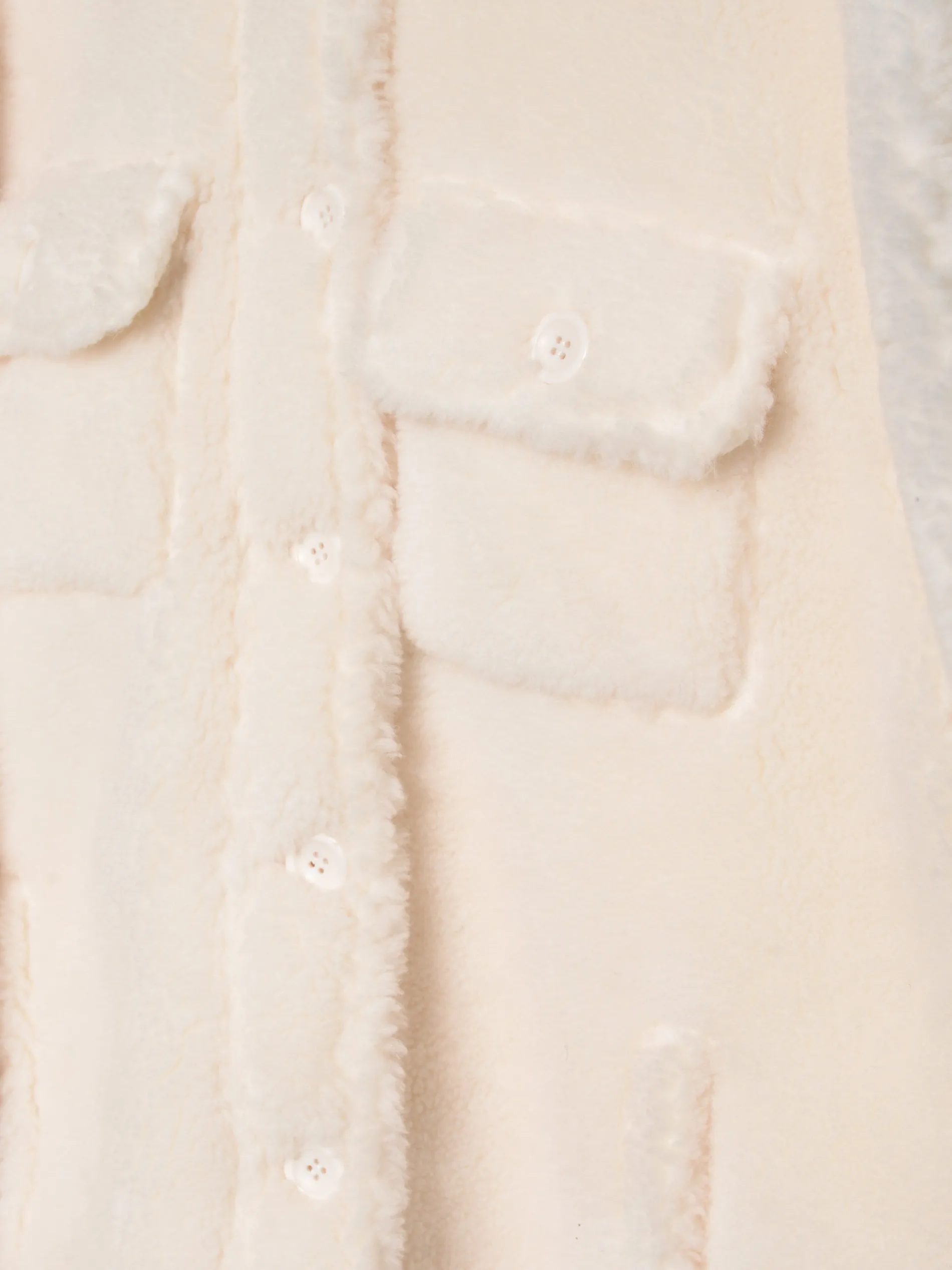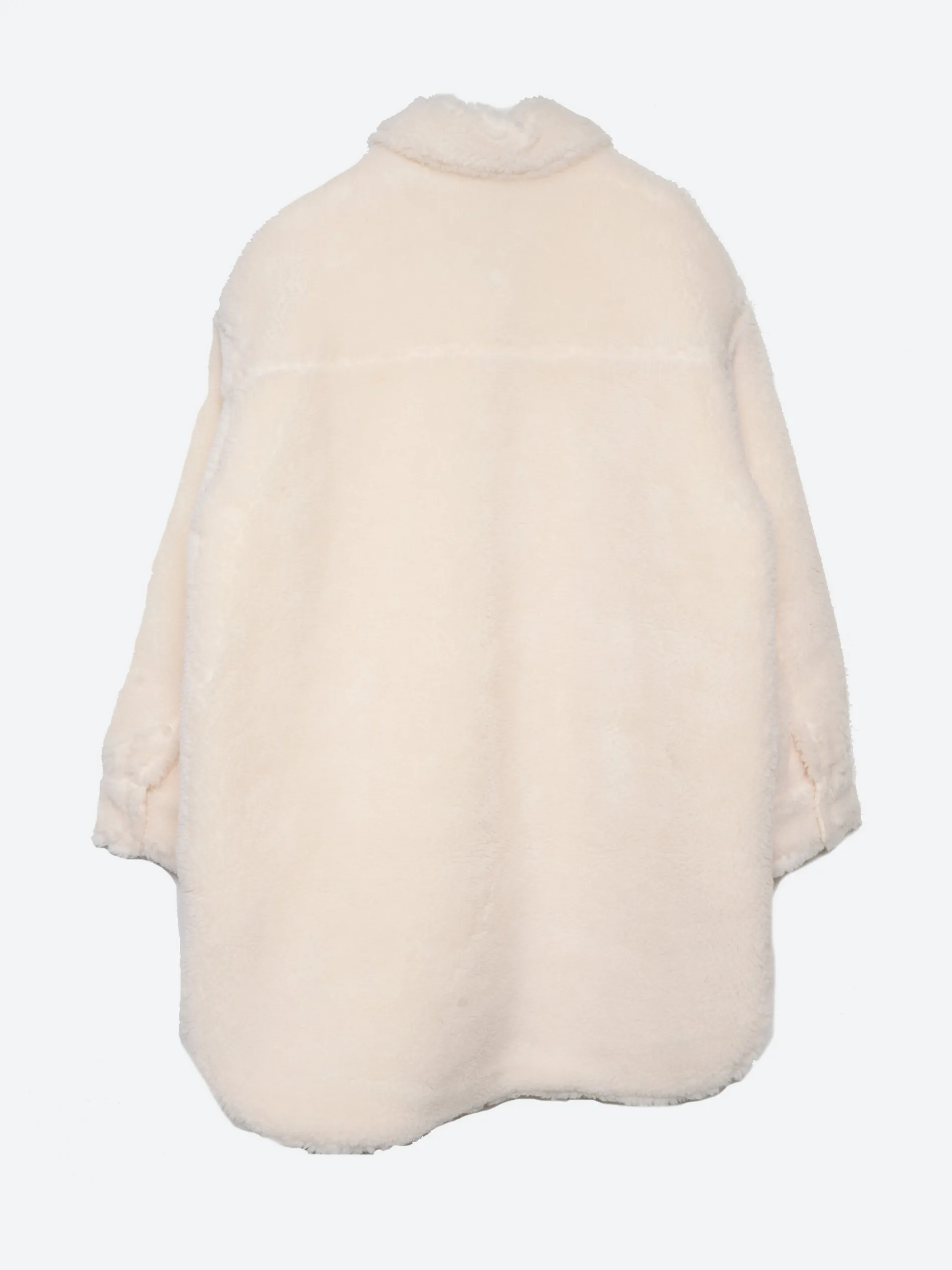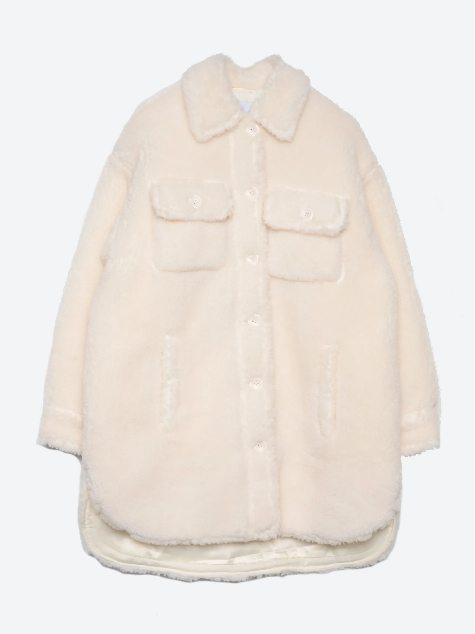 Sabi is an oversized shirt-style jacket crafted from warming wool-blend faux fur. It’s designed with a point collar, breast pockets and front button fastenings. The perfect outer layer for a Sunday stroll.