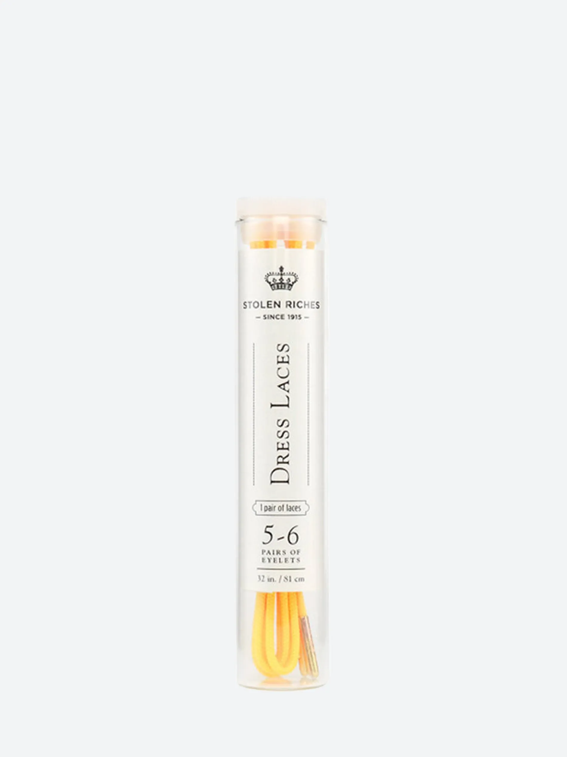 Add a pop of color with a pair of Stolen Riches 32″/81cm dress laces. Ideal for dress shoes with 4-6 pairs of eyelets.